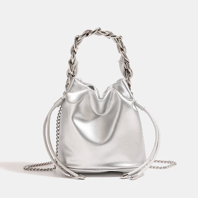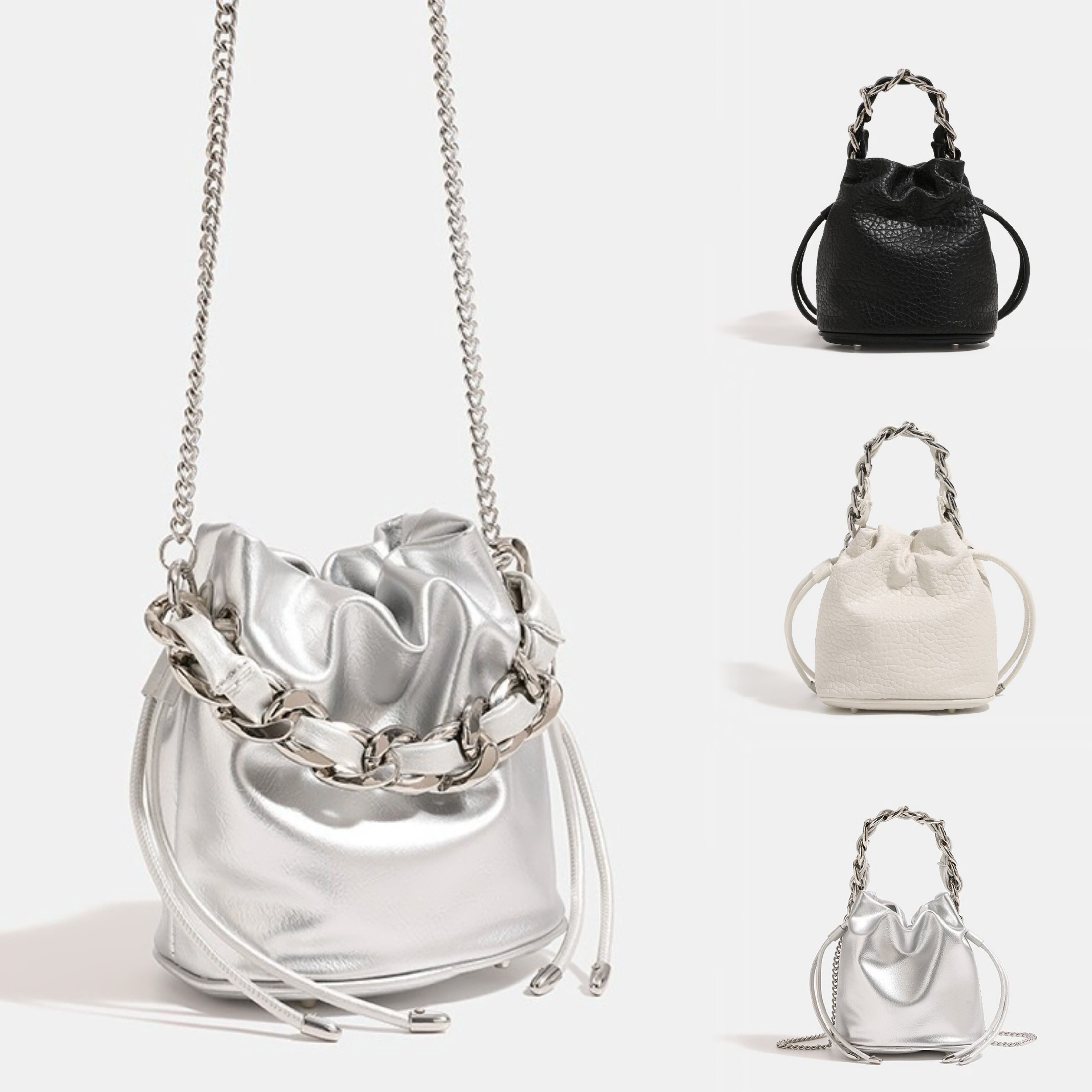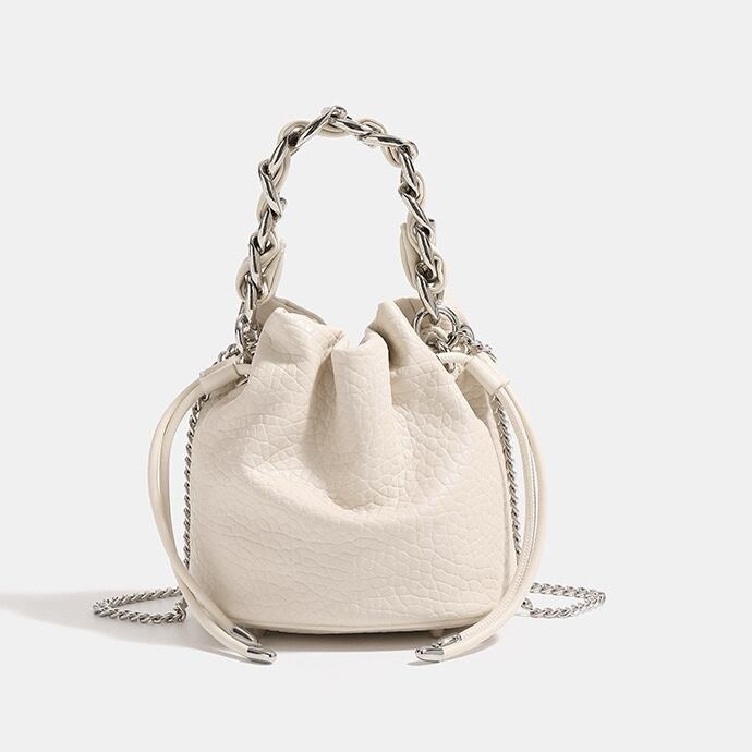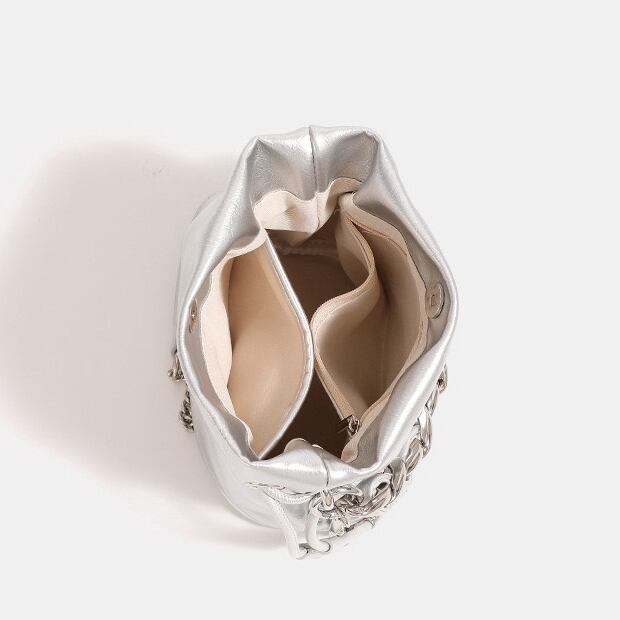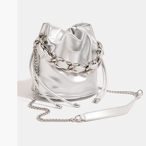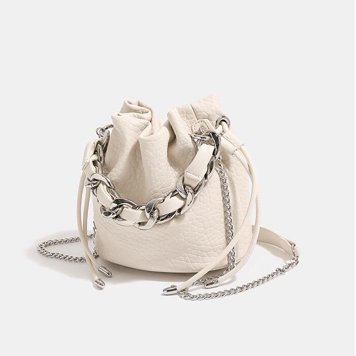 チェーン ショルダーバッグ 斜めがけ 肩掛け 2way バッグ バケツバッグ 大人 カバン バケツ型 2wayバッグ おしゃれ かわいい シンプル 韓国風 ブラック シルバー アイボリー 送料無料 | primarc