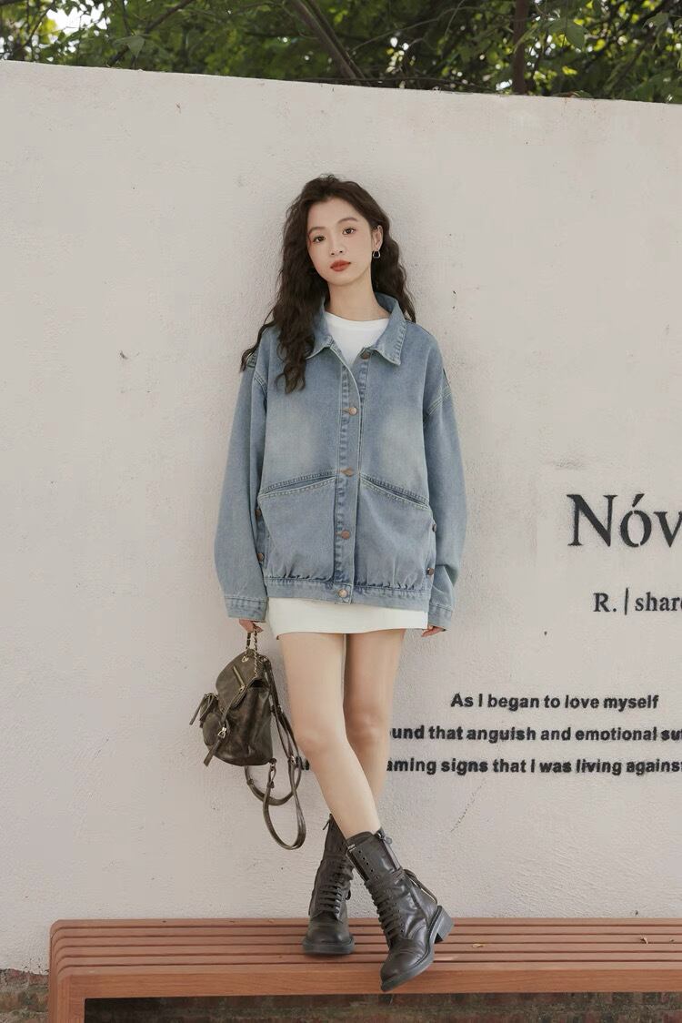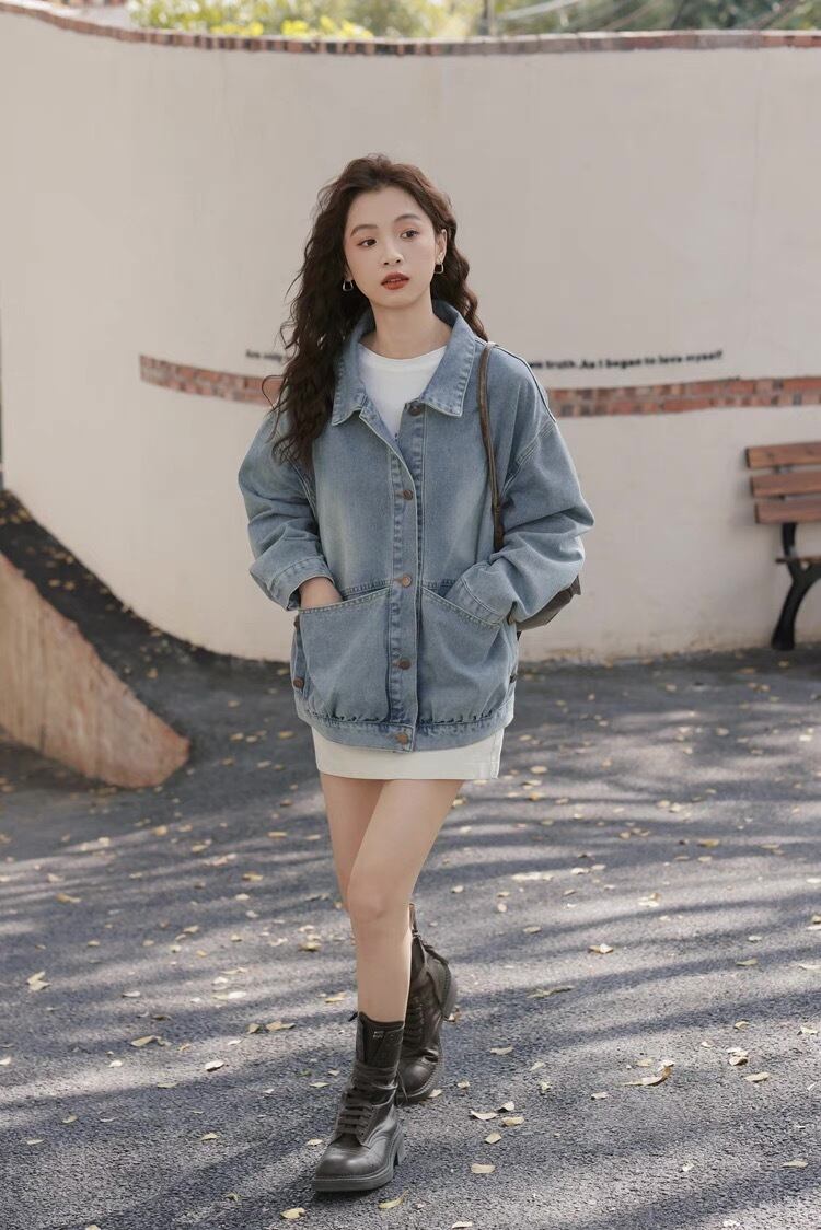 ★このデニムジャケットは、柔らかいストレッチ生地を使用し、動きやすさと快適さが嬉しい一着。オーバーサイズデザインがトレンド感を演出し、さまざまなスタイルに合わせやすくなっています。