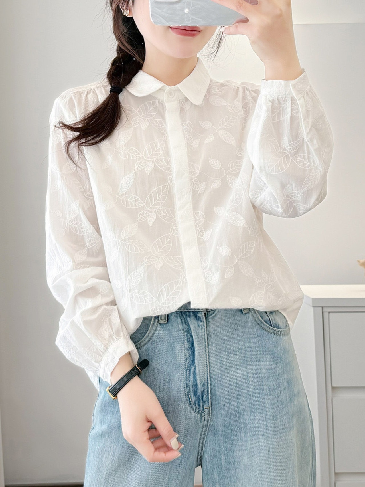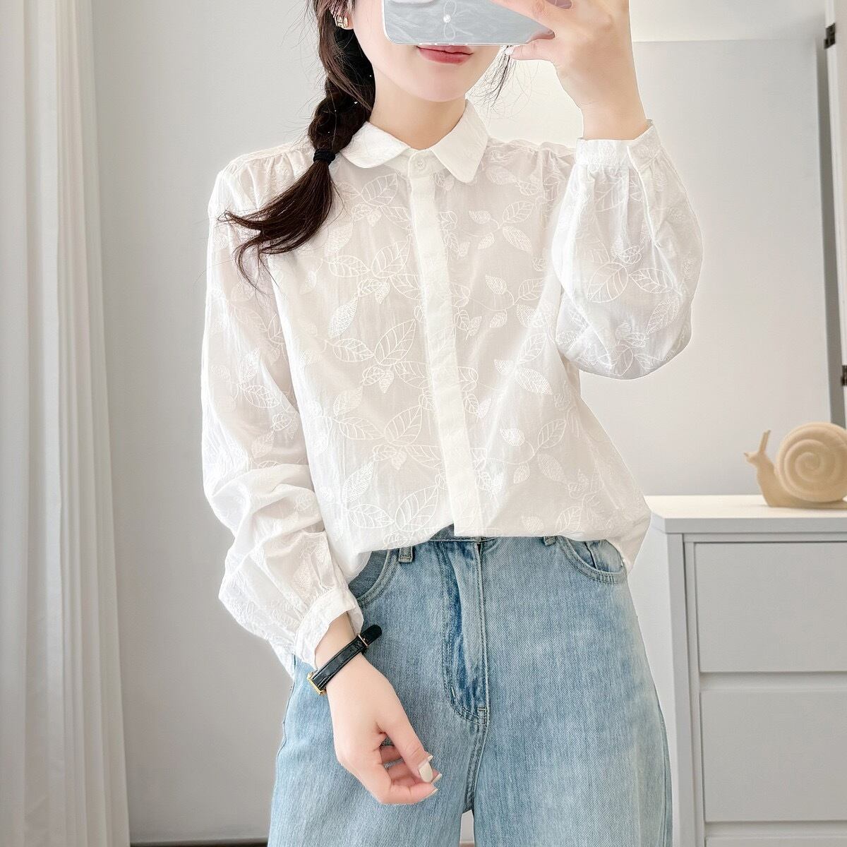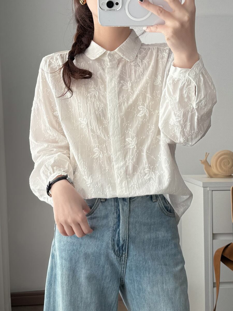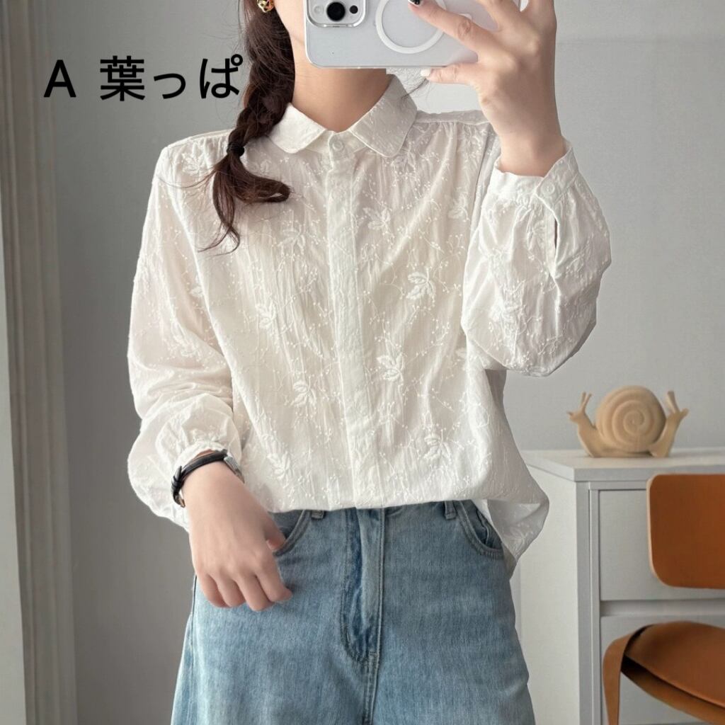ガーゼ シャツ レディース ダブルガーゼ 七分袖 大きいサイズ トップス ブラウス 刺繍シャツ 秋 春 シャツブラウス 花柄 刺繍 綿シャツ ホワイトシャツ 前開き 折襟 ベーシック 白シャツ シンプル コットン 羽織り 体型カバー 折り襟 夏 おしゃれ 送料無料 | primarc