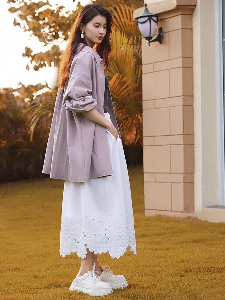 商品情報 素材/材質: 綿100% ●品名:Aライン ロングスカート綿100% ボウタイ 透かし編み レース柄 きれいめコーデ 上品で女性らしさを大切にした「Aライン ロングスカート綿100% ボウタイ 透かし編み レース柄 きれいめコーデ」が登場しました!ボウタイがアクセントとなったデザインと、透かし編みのレース柄が特別感を引き立てます。Aラインのシルエットは、スタイルを美しく見せるだけでなく、動きやすさも兼ね備えています。 綿100%素材を使用しているため、肌触りが素晴らしく通気性も良く、気軽に着こなせるため、春夏のコーディネートには最適です。さまざまなシーンで活躍できるこのスカートは、カジュアルからエレガントなスタイルまで幅広くマッチし、毎日のコーデに新しいアクセントを加えるアイテムです! シンプルなトップスと合わせるだけで、きれいめコーデが完成します。デイリーユースから特別な日まで、あなたのスタイルを格上げすること間違いなし!
