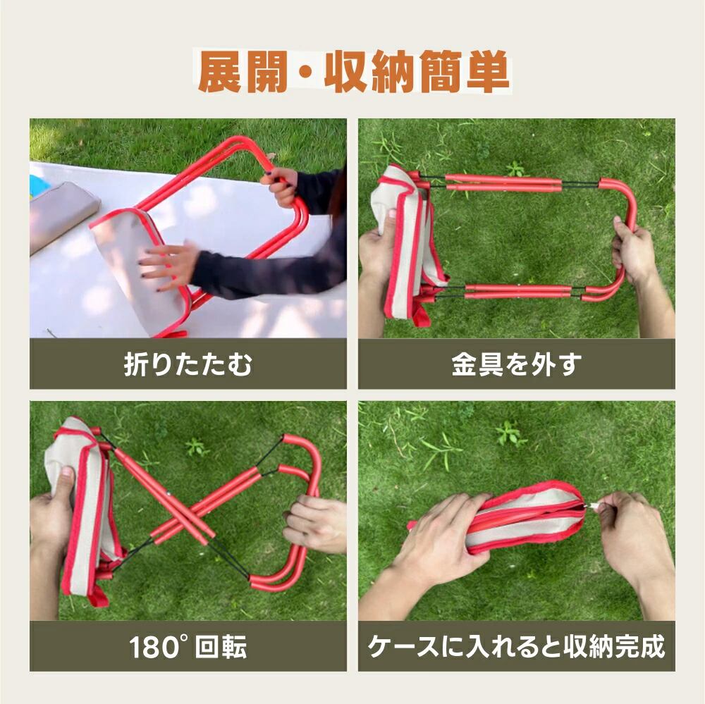 ・高い耐久性:アルミ合金フレームとオックスフォード生地の座面を採用。軽量でありながら耐荷重100kgを実現