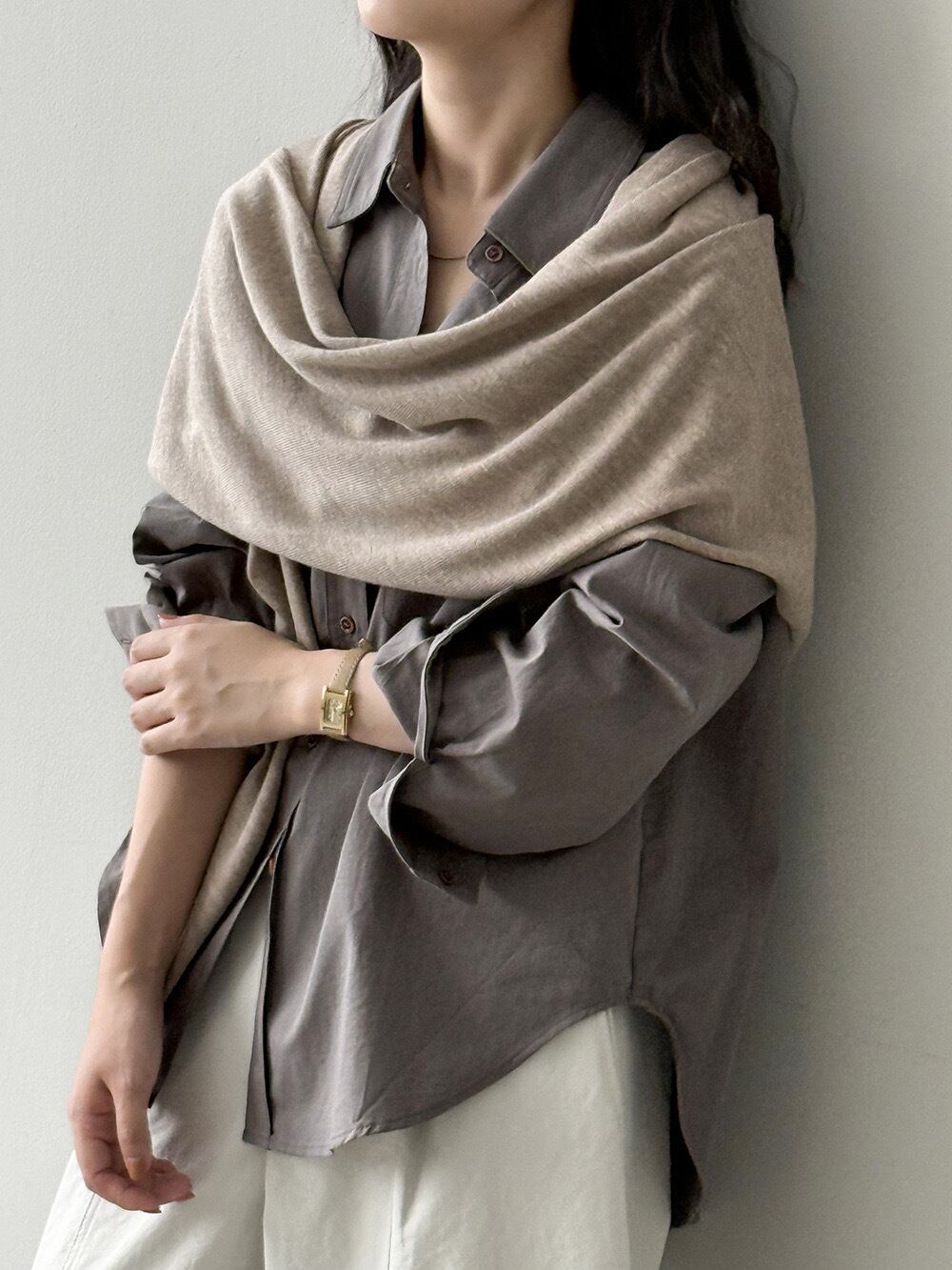 【製品特徴】 ・柔らかなニット素材:肌触りがよく、軽やかに肩にかけることであたたかさを保ちます。寒い季節でも快適に過ごせる頼もしいアイテムです。 ・シンプル&カジュアル:シンプルなスタイルながらも、おしゃれさを引き立てるボーダーデザイン。デニムやチュニックとの相性も抜群です。 ・多様なスタイリング:カーディガン風に羽織ったり、ショールとして使ったり、シーンに応じてアレンジを楽しめます。