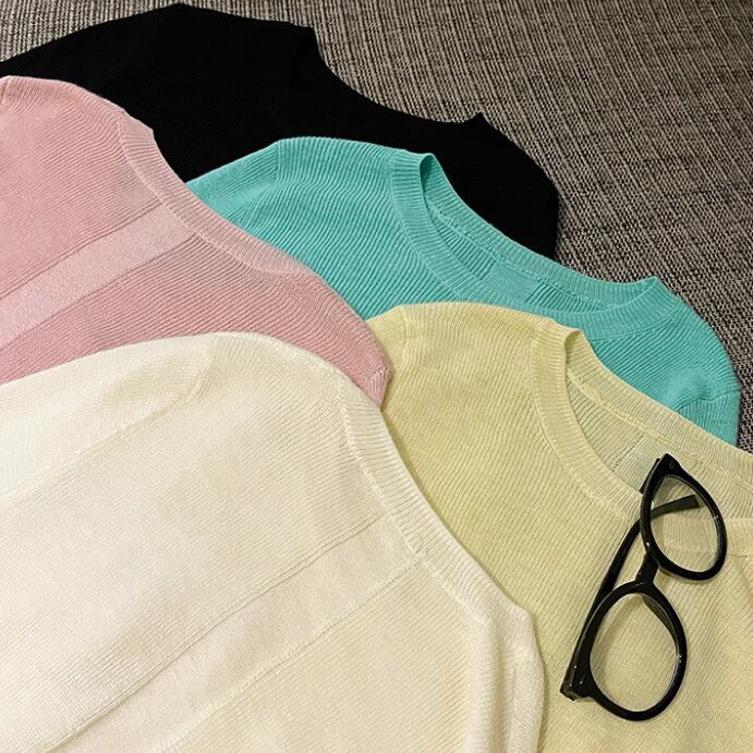 ■【スタイリング】  豊富な色展開から、お好きなカラーを選べば、何通りものスタイルが楽しめます。シンプルなTシャツ感覚で、ジャケットやカーディガンとも合わせやすく、重ね着にも最適です。何枚あっても活躍する、このベーシックニットはあなたのワードローブに欠かせないアイテムです。