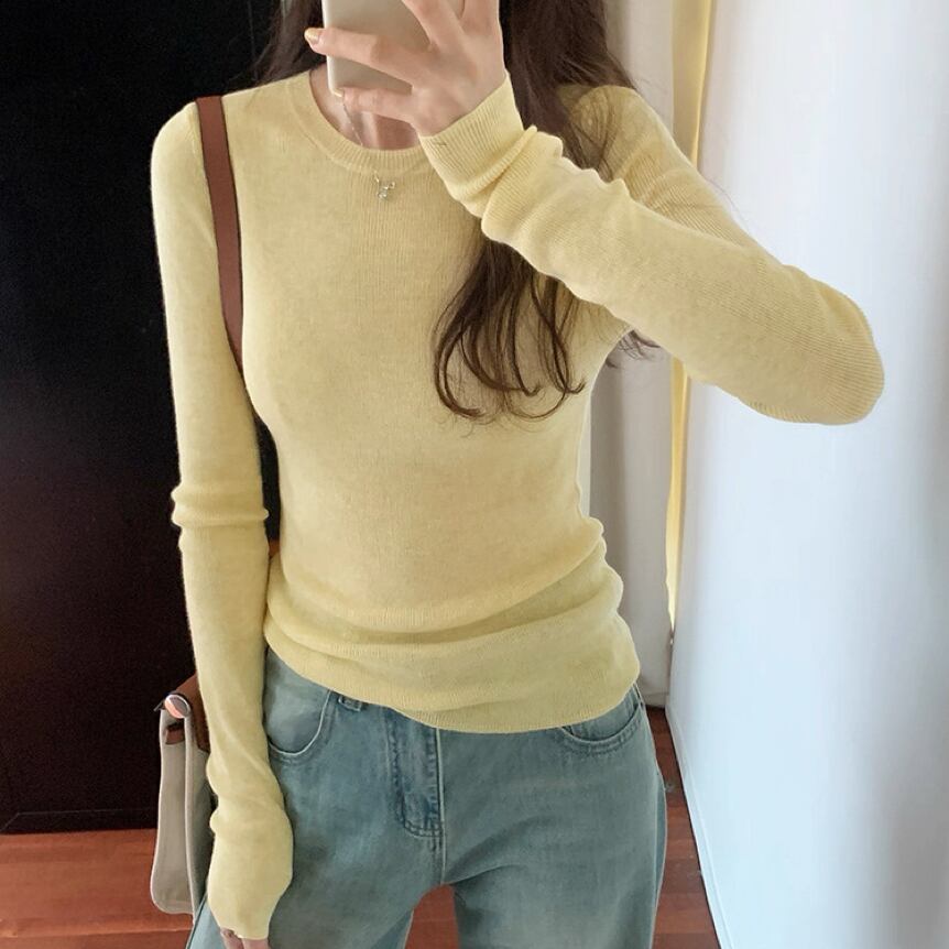 ベーシックニット 薄手 ニット トップス レディース タイト セーター スリム フィット プルオーバー 秋 冬 薄手 上品 無地 シンプル きれいめ 着回し トップス おしゃれ長袖 | primarc