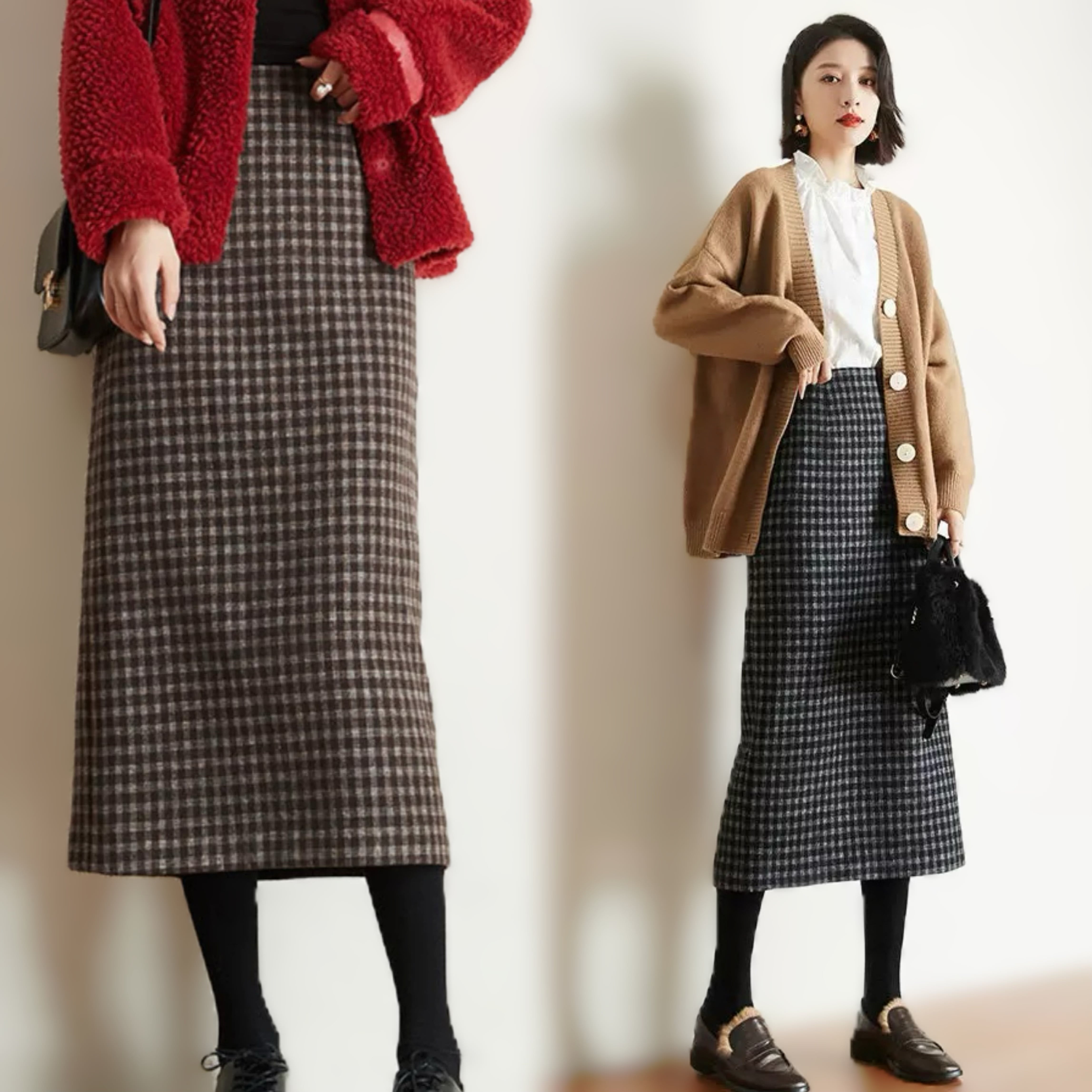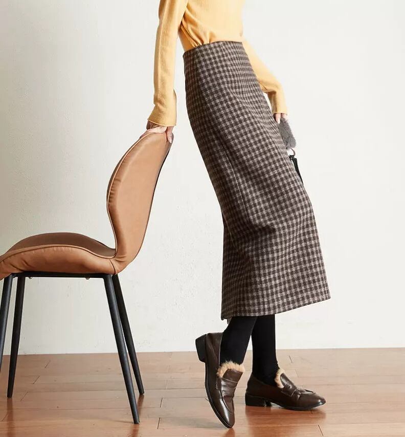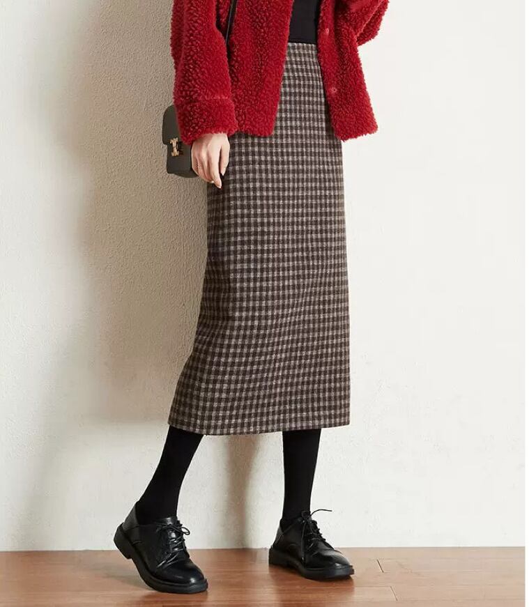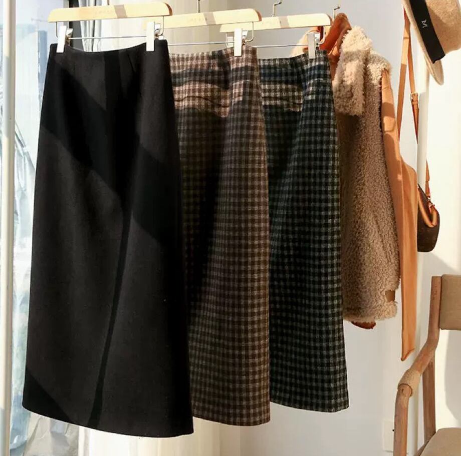 【新着】スタイリッシュなチェック柄ウールライクタイトスカートのご紹介!