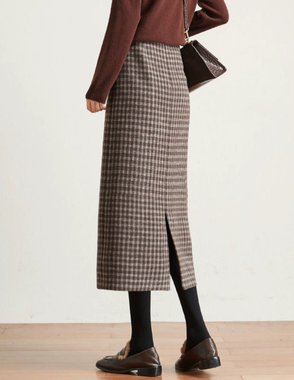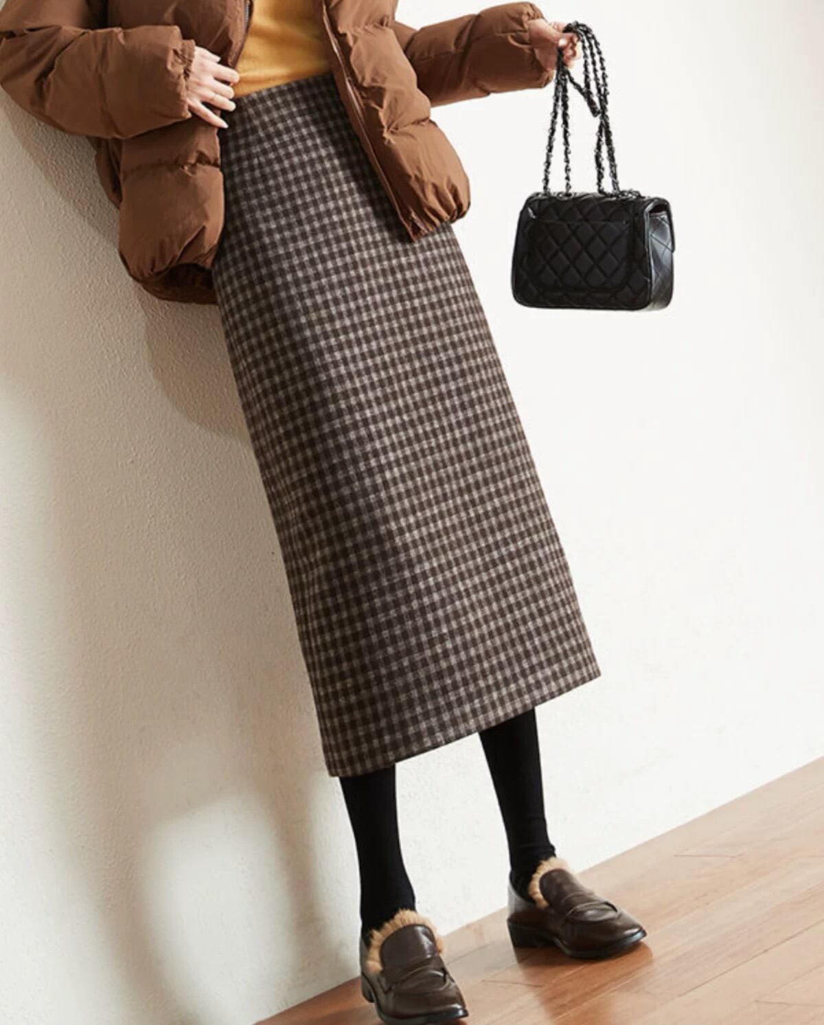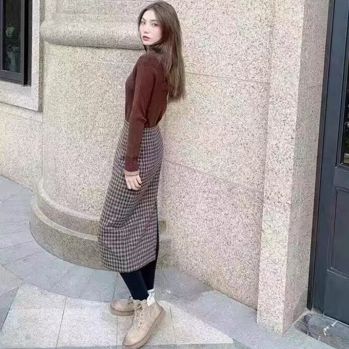 【新着】スタイリッシュなチェック柄ウールライクタイトスカートのご紹介!