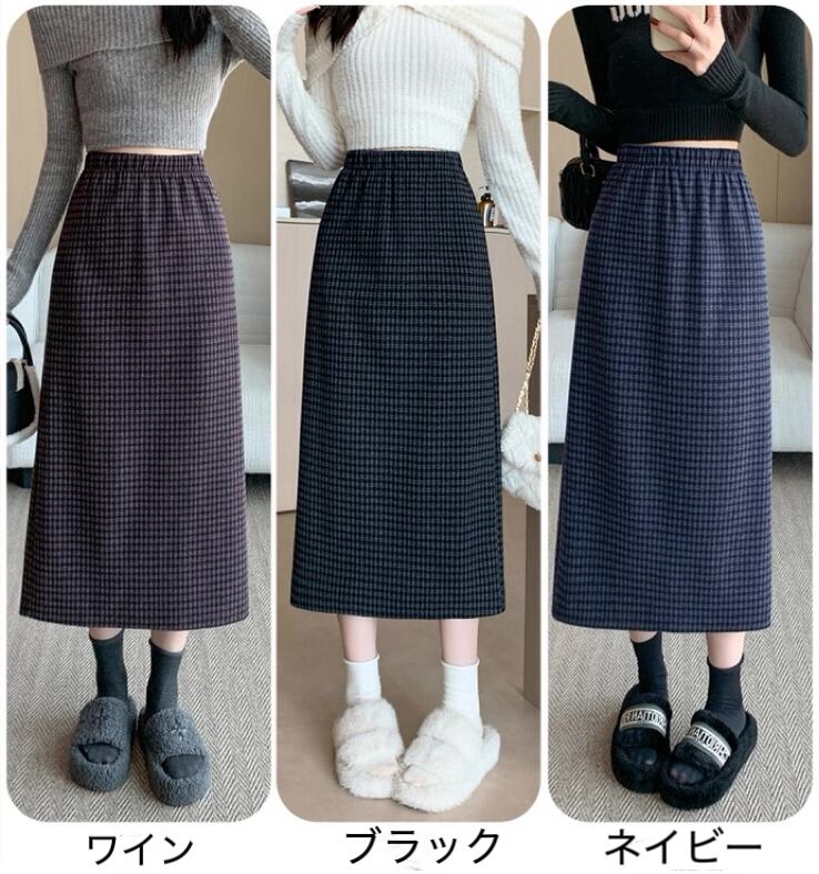■【暖かさとお手入れの簡単さ】 起毛素材が肌に優しく、寒い季節でも快適に過ごせる一着です。また、お手入れも簡単で、家庭で洗濯可能なので、いつでも清潔に保つことができます。ぜひこのチェック柄ウールライクタイトスカートを、あなたの秋冬コレクションに加えてみてください!