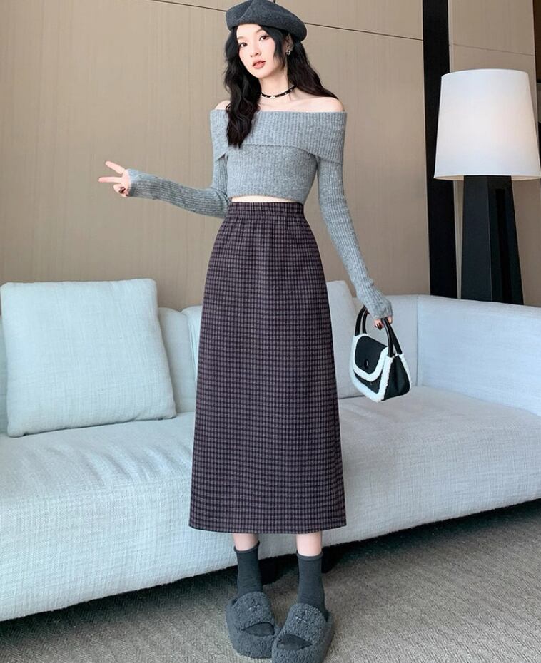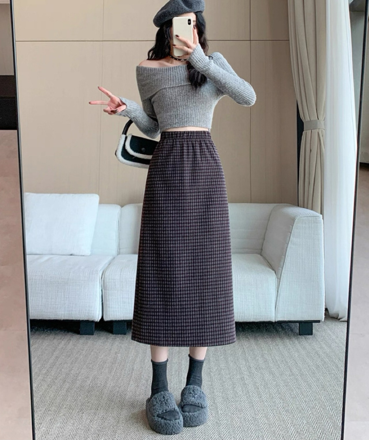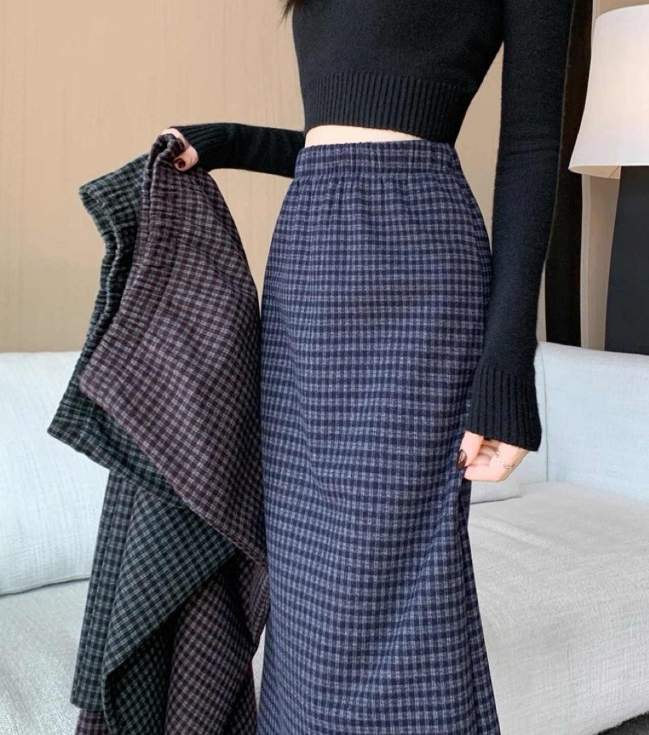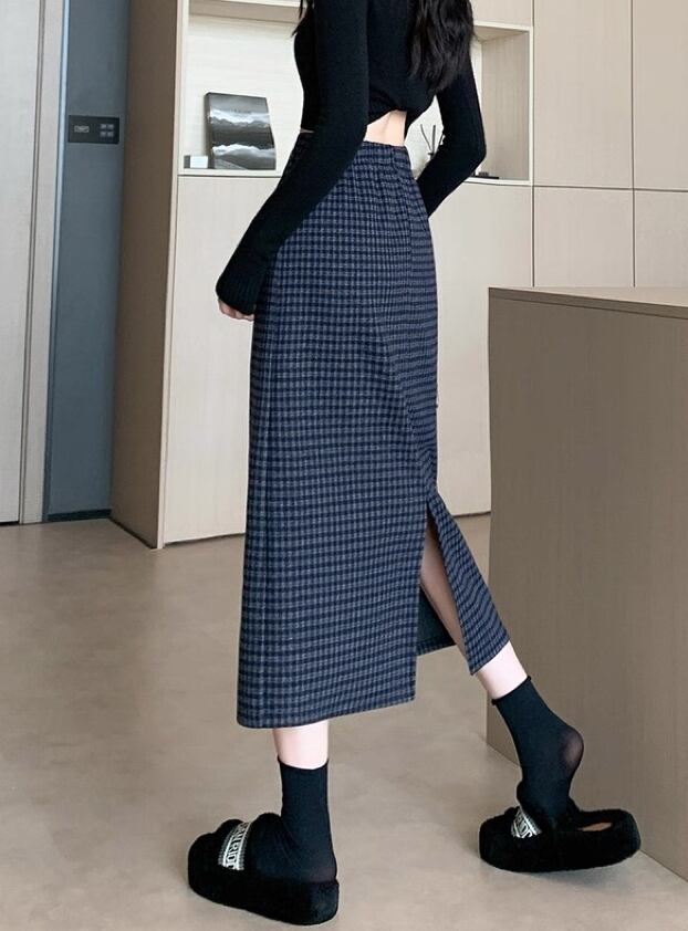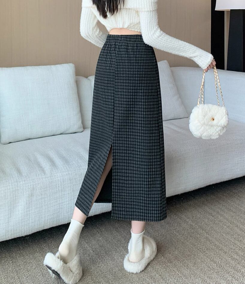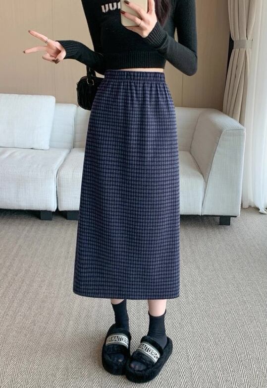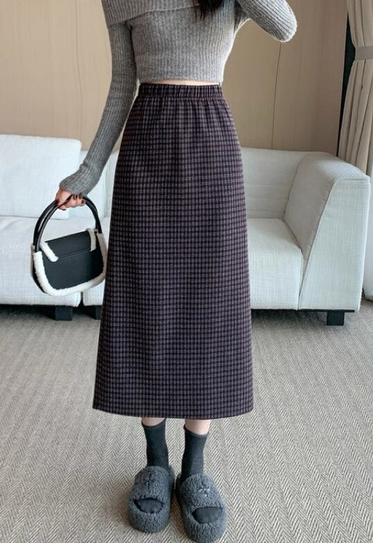 このチェック柄ウールライクタイトスカートで、上品でありながら楽ちんなスタイルを楽しんでください!