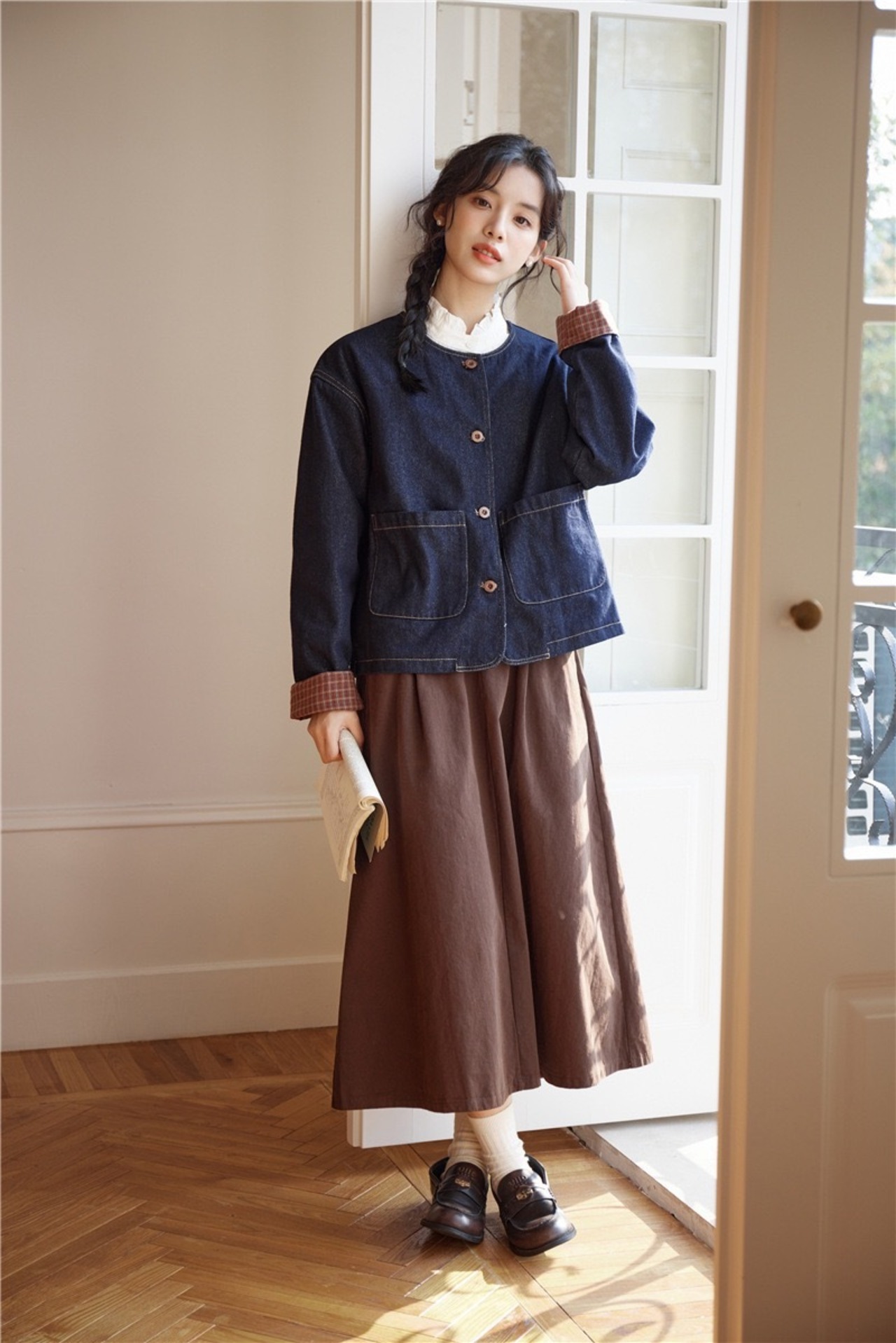 【新着】デニムカーディガン裏配色で春秋コーデを楽しもう!