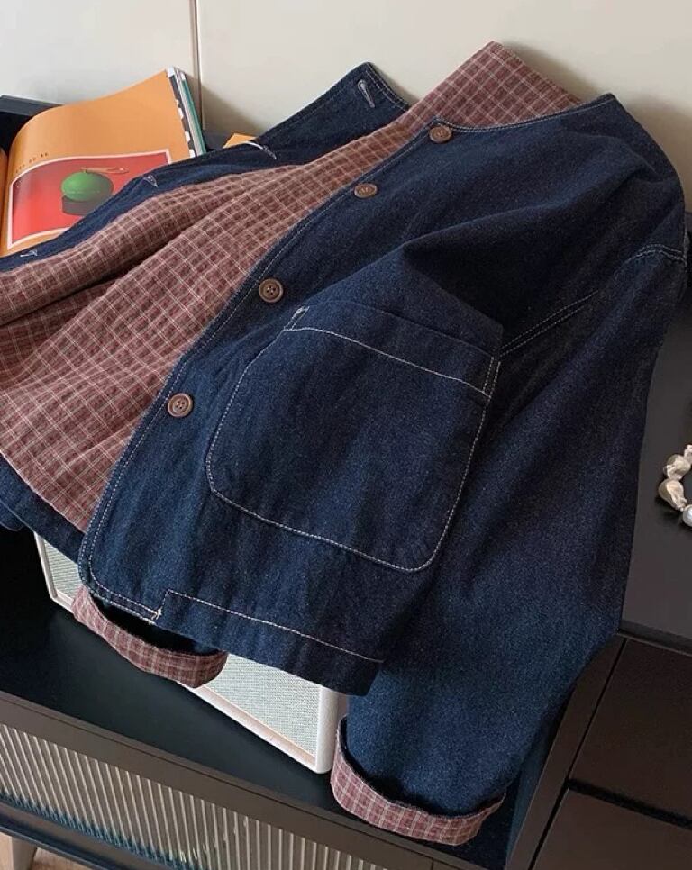 このデニムカーディガン裏配色で、リラックスしたスタイルをおしゃれに楽しんでください!