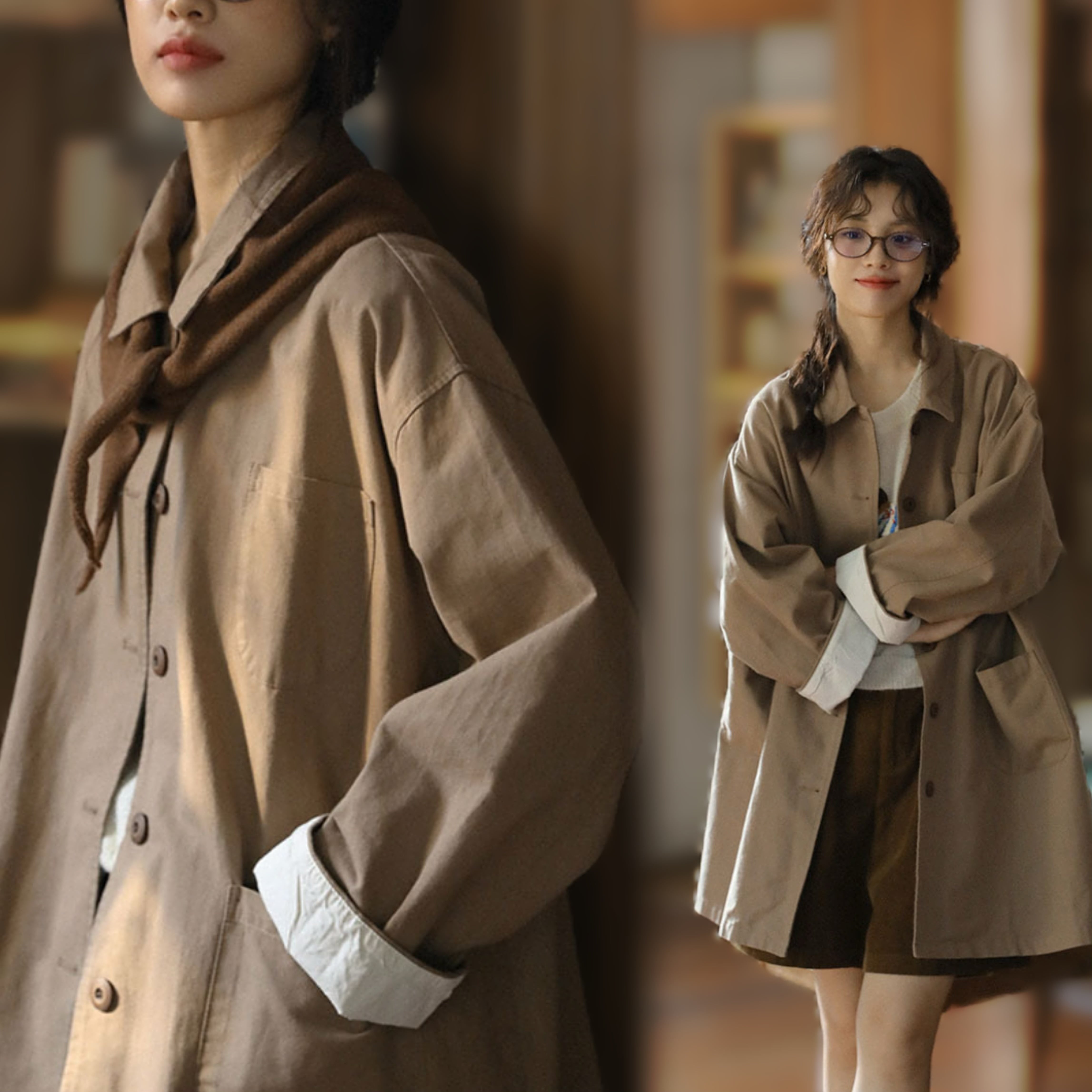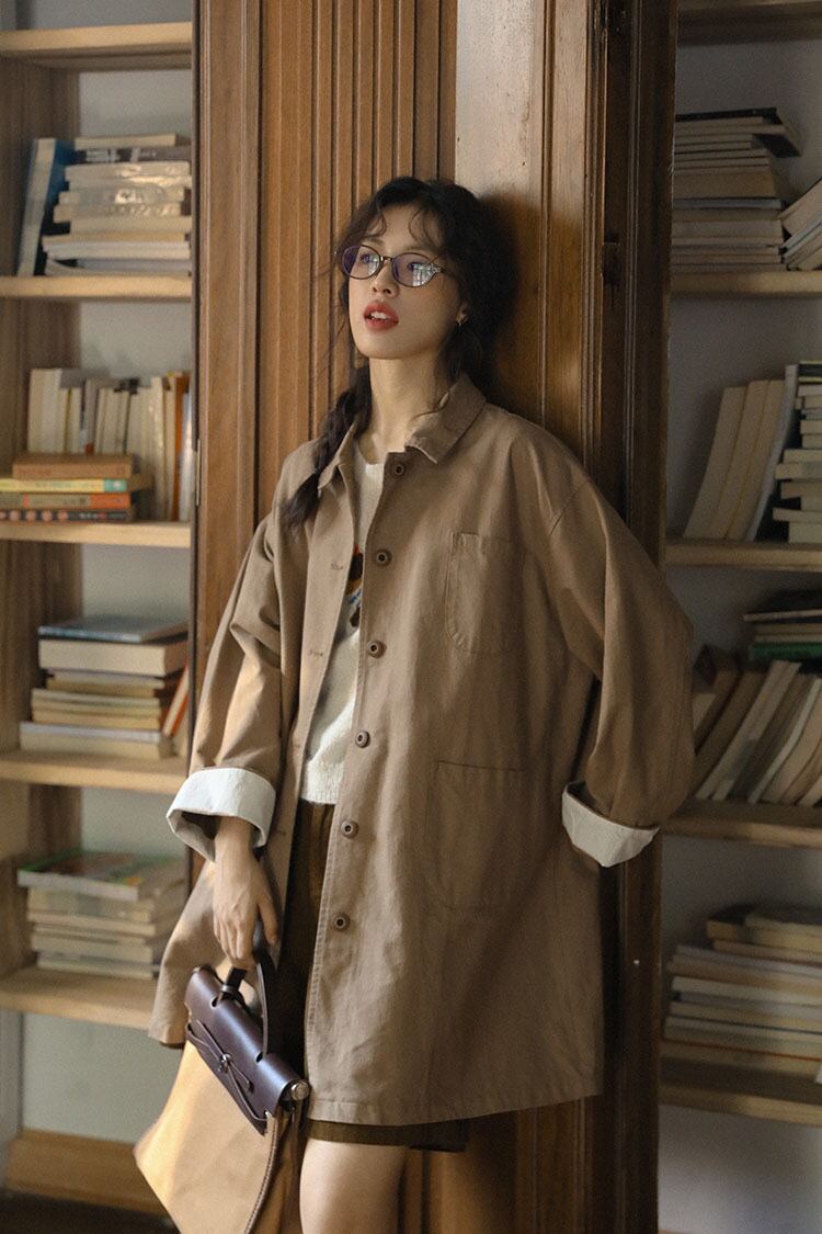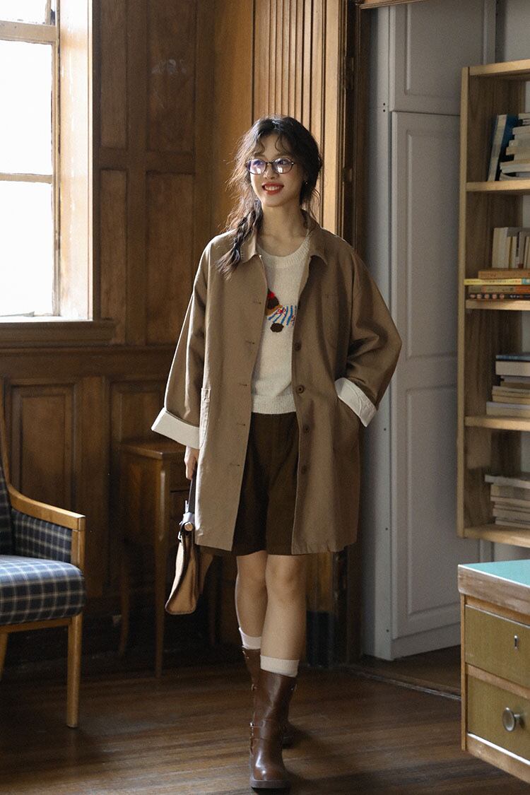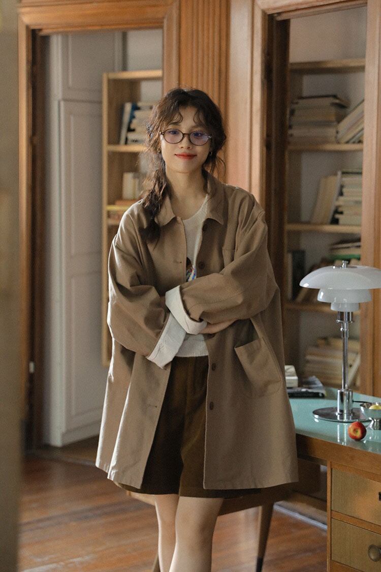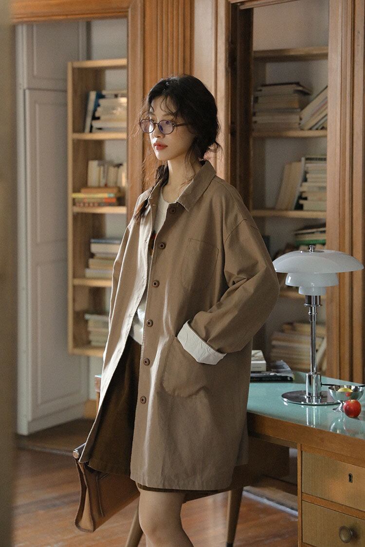 このトレンチコートは、春や秋の季節にぴったりのライトアウターです。