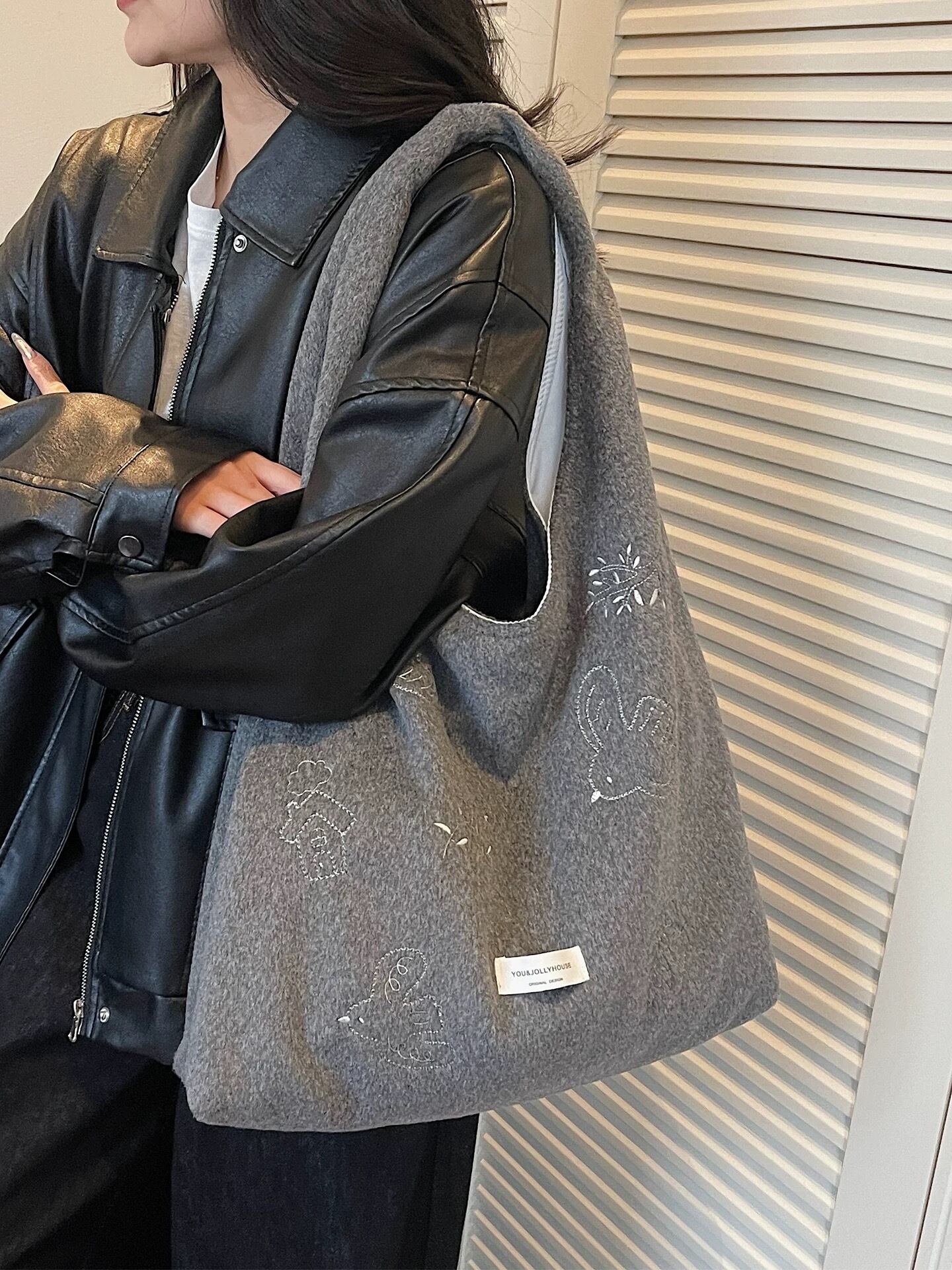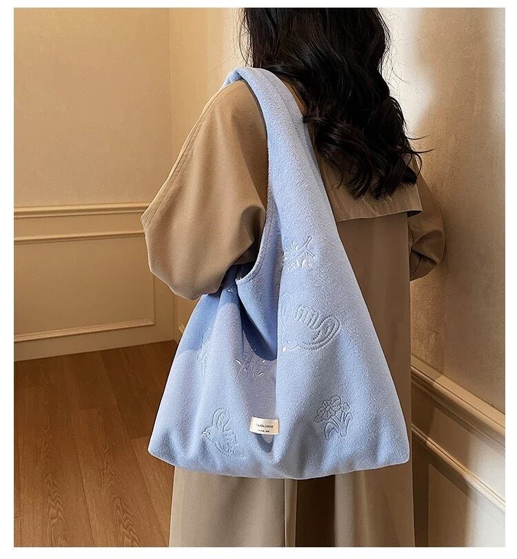 手提げかばんお しゃれ肩掛けカバン レトロスエードライクハンド バッグ 大人可愛い秋冬バッグ黒大人きれいめ鞄軽 量お出かけ鞄柔らかい