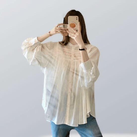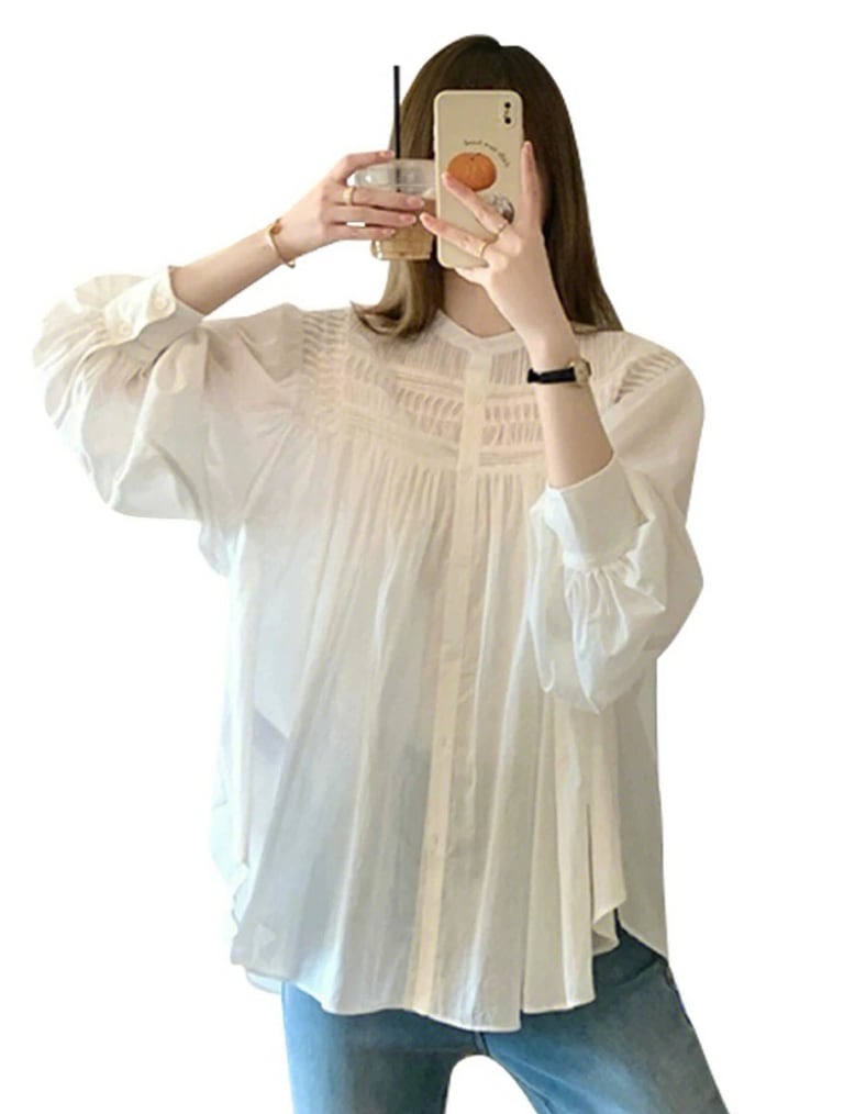 送料無料 シャツ ブラウス レディース Vネック 白シャツ シャツワンピース レース柄 ロングチュニック ロングブラウス 長袖 大きいサイズ ゆったり 春 オフィス ビジネス 通勤 ホワイト M L XL