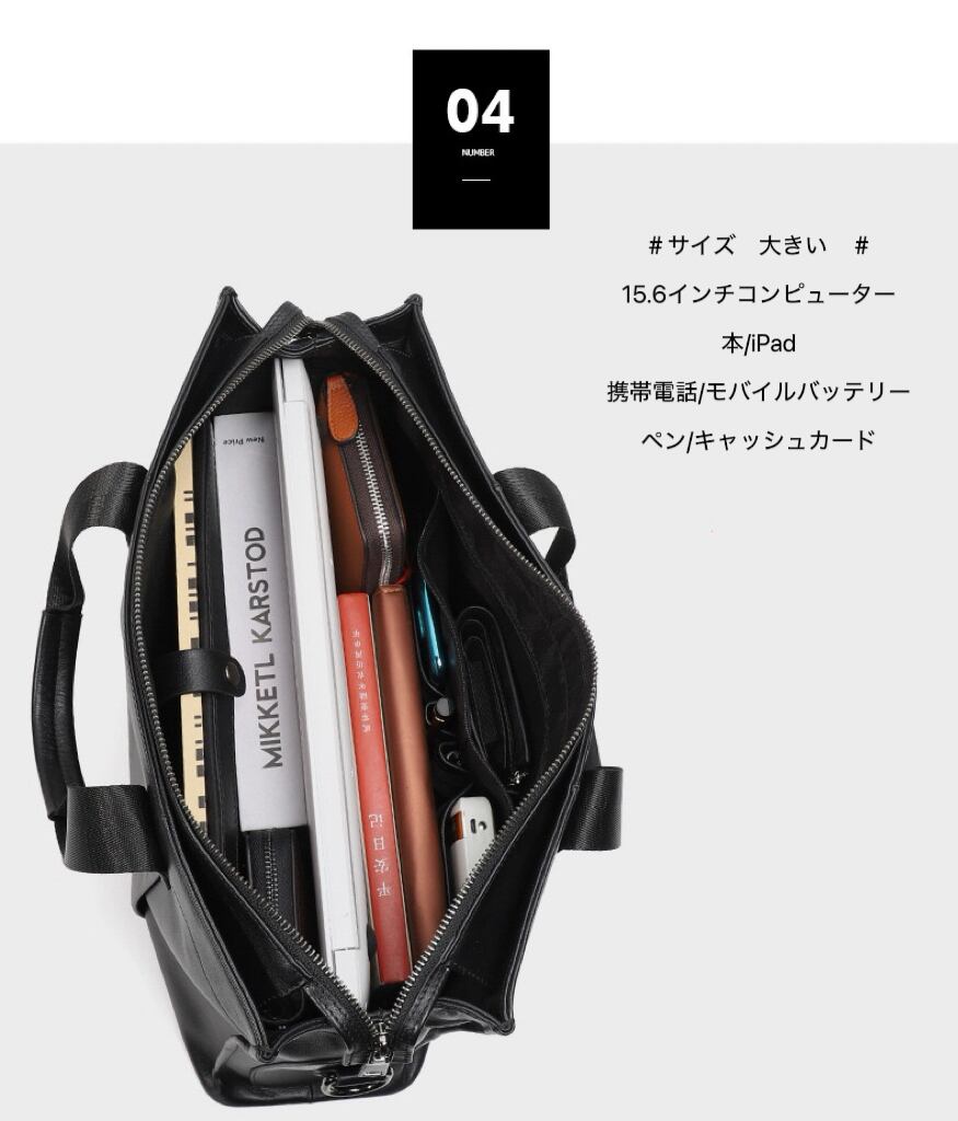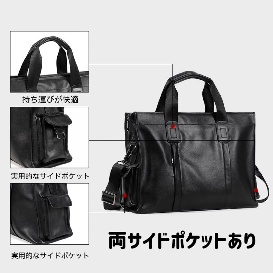 シンプルでありながら洗練されたデザインの本革ビジネスバッグは、通勤や就活、通学にも最適なアイテムです!大容量のため、パソコンや書類、日常必需品をしっかり収納でき、忙しいビジネスシーンをサポートします♪ さらに、2way仕様でショルダーバッグとしてもご使用いただけるため、シーンに応じたスタイルが楽しめます。