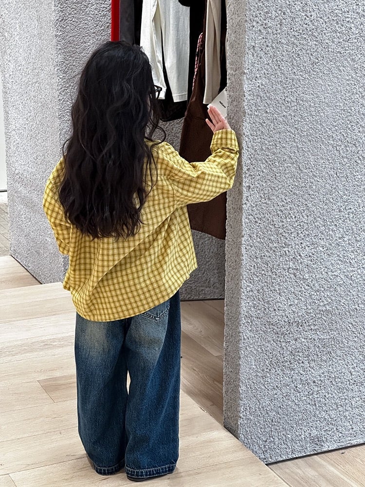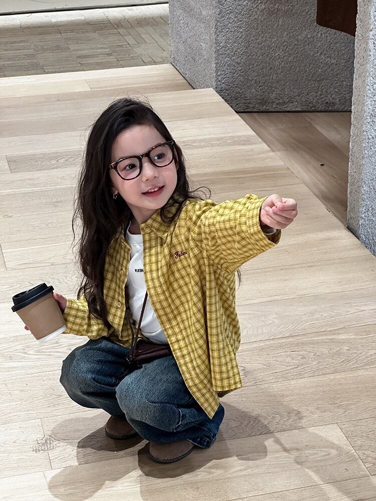 ギンガムチェックシャツ 韓国子供服 ベビー服 キッズ服 赤ちゃん 子供 男の子 女の子 ユニセックス ナチュラル シンプル おしゃれ かわいい 長袖 バンドカラー チェックシャツ コットン デイリー お揃い リンクコーデ 秋冬 ギフト プレゼント
