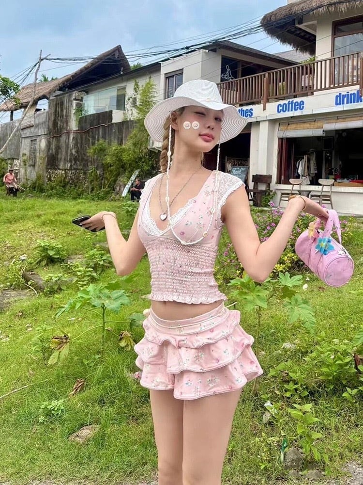 2点セット、トップ、スカート風パンツ。コーデでリゾートを楽しめちゃいそう! ♪リゾートやビーチでサラッと決まる、お洒落上級者さんに! ♪涼しげなデザインで、暑い夏も爽やかに楽しめちゃいそう!