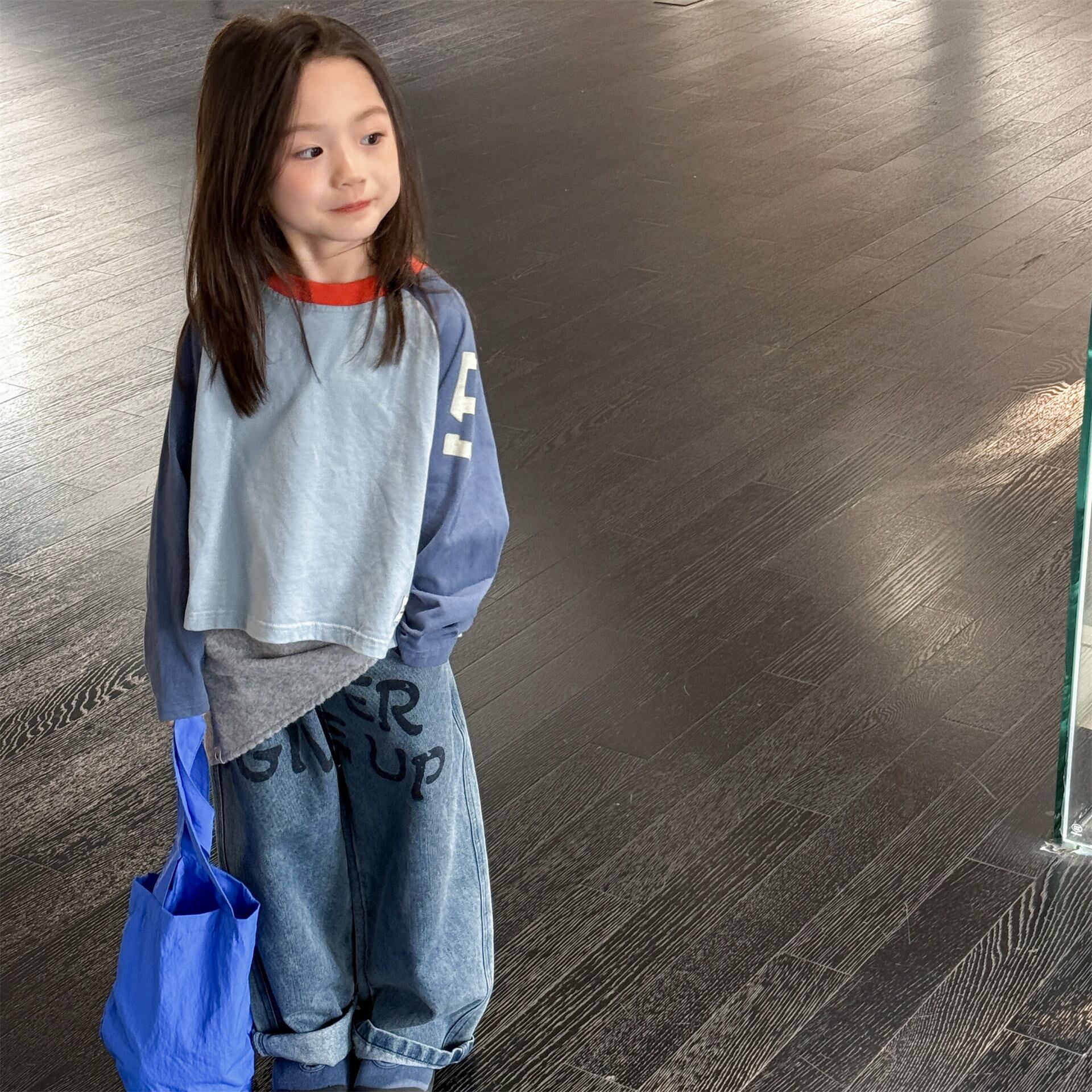 カジュアル キュート アルファベット 韓国子供服 女の子 男の子 長袖 Tシャッツ トップス
