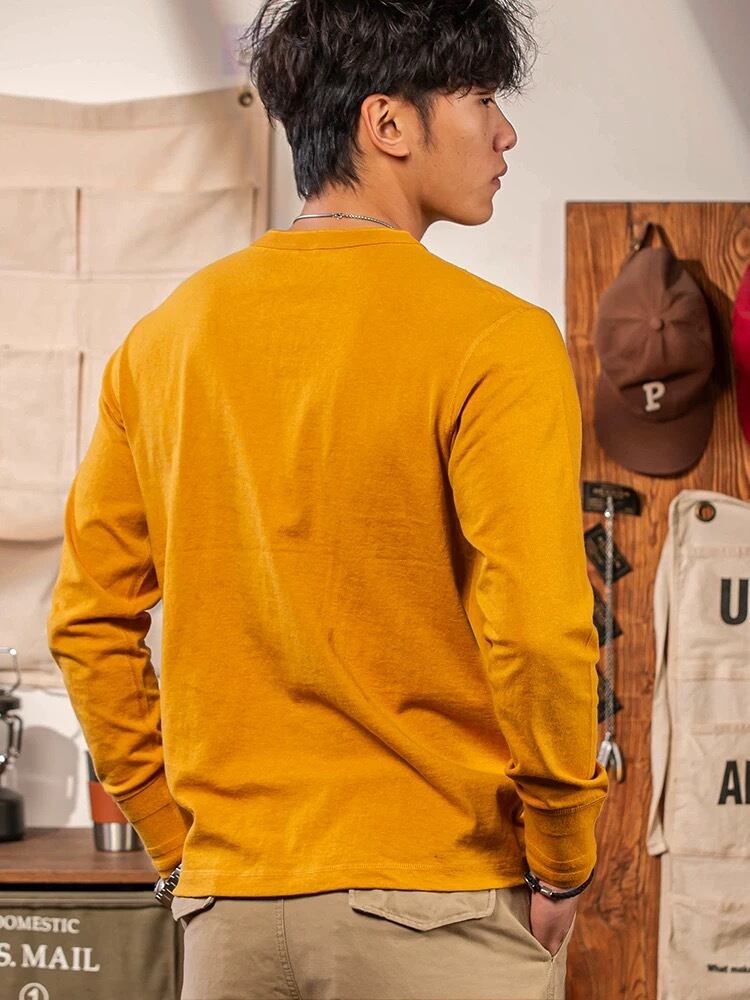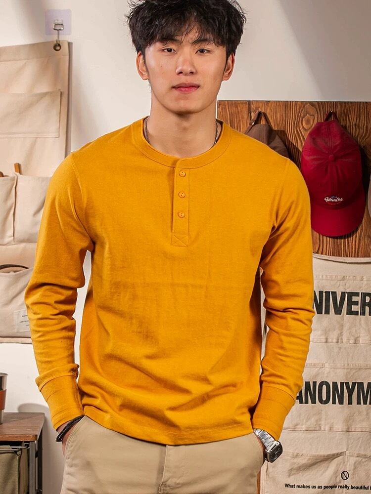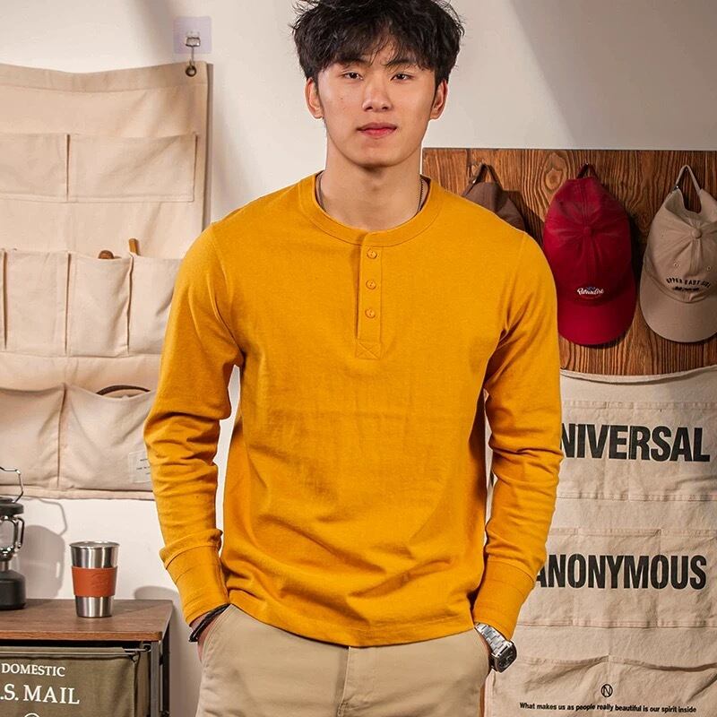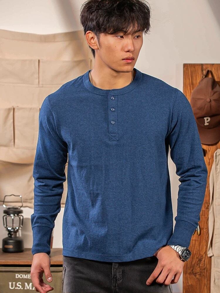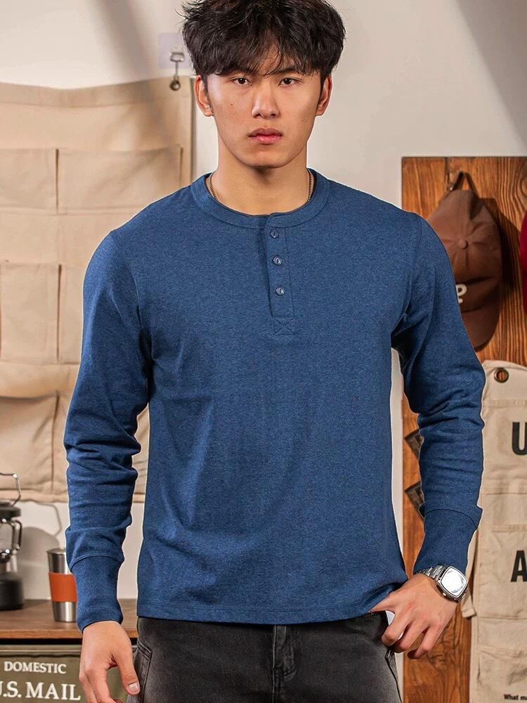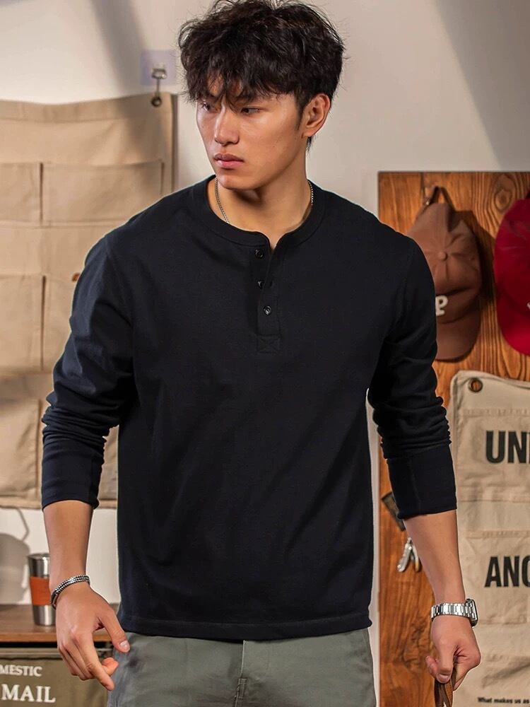 ヘンリーネック クルーネック メンズ ロングTシャツ 無地 Tシャツ 長袖 カットソー 100%綿 大人 シンプル ブランド 細身 タイト ブラック ホワイト 黒 白 春 秋 冬 S M L XL XXL