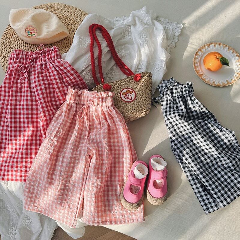 おしゃれで可愛らしいキッズパンツが登場!チェック柄のワイドパンツは、女の子のおしゃれを引き立てる必須アイテムです。どんなコーディネートとも合わせやすく、普段使いからお出かけまで幅広く活躍します。プリーツデザインが動きやすさを演出し、元気いっぱいのキッズにぴったりです!