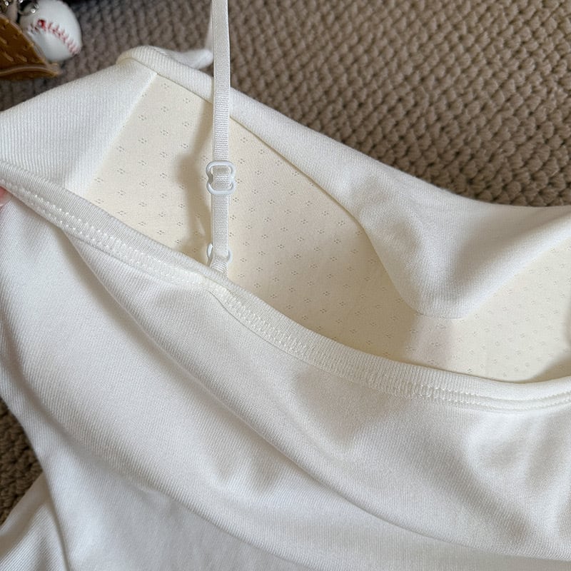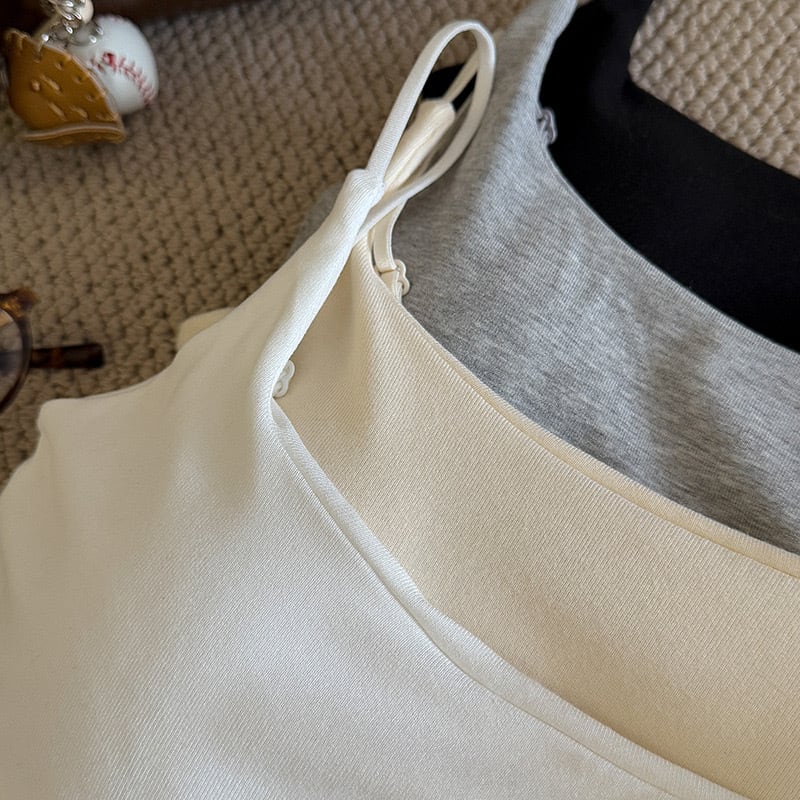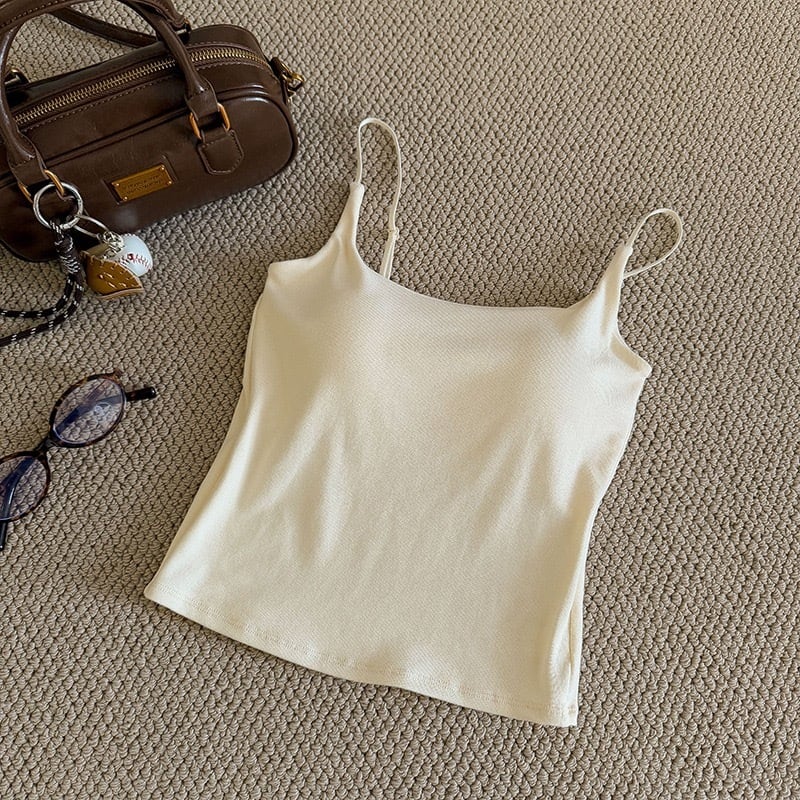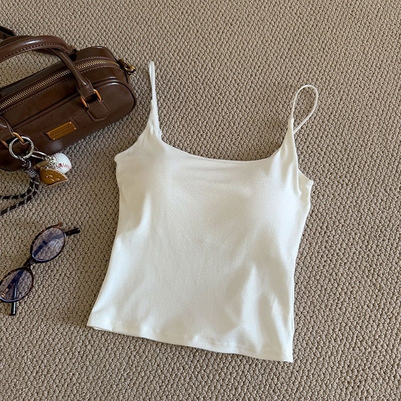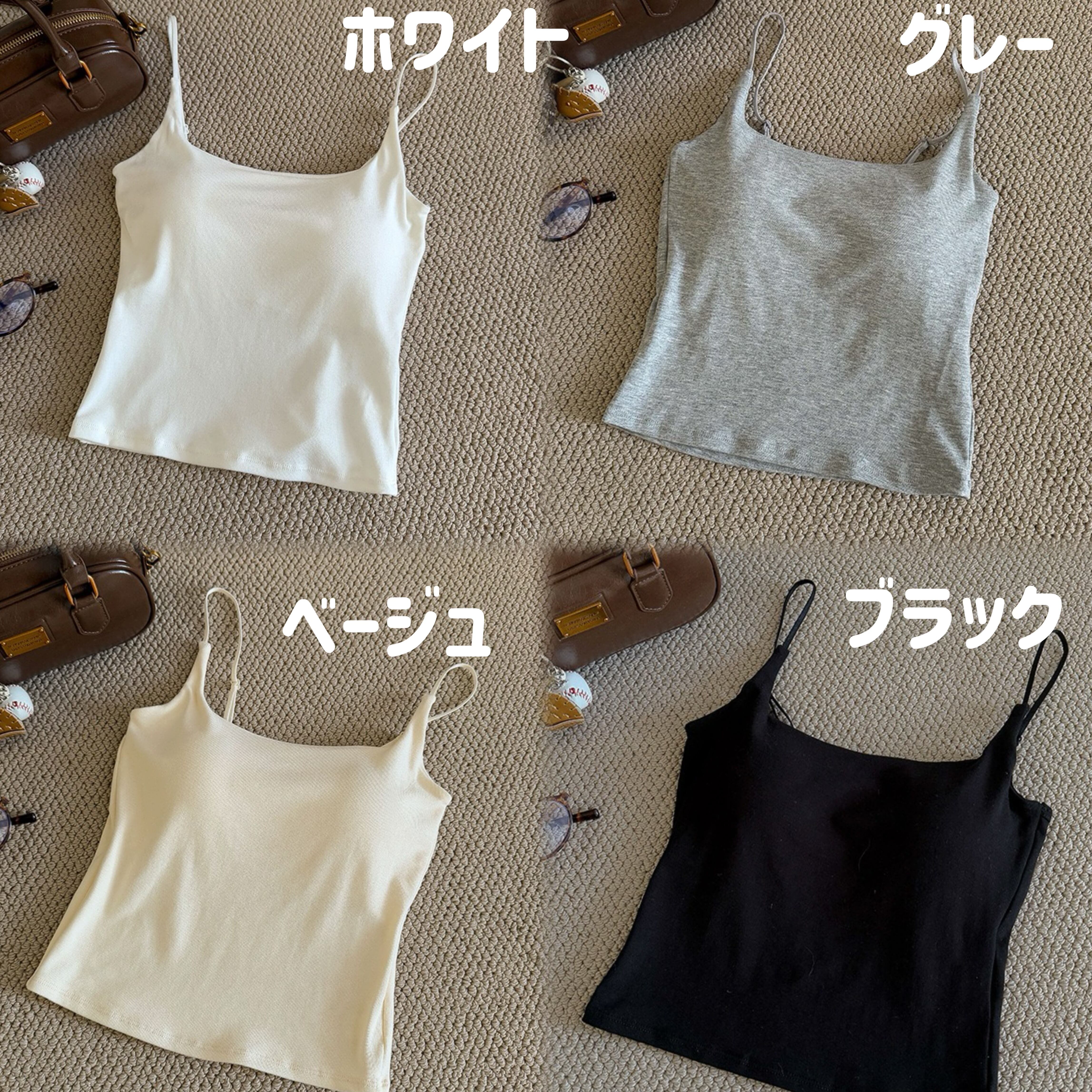 キャミソール カップ付き アンダーゴムなし シンプル 単色 吊り紐