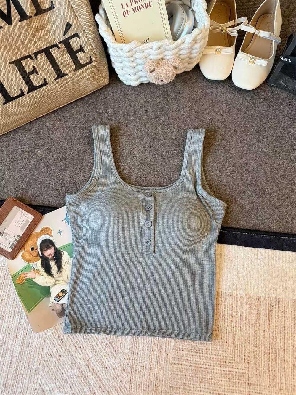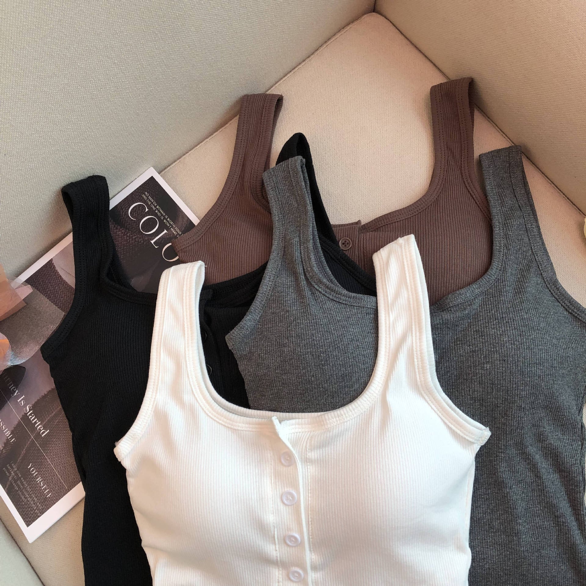 キャミソール カップ付き アンダーゴムなし シンプル 単色