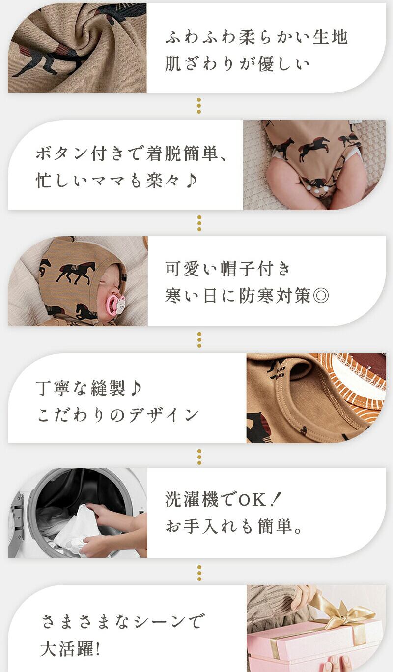 お洒落でかわいい馬柄、赤ちゃんの可愛さを引き立てるカバーオール