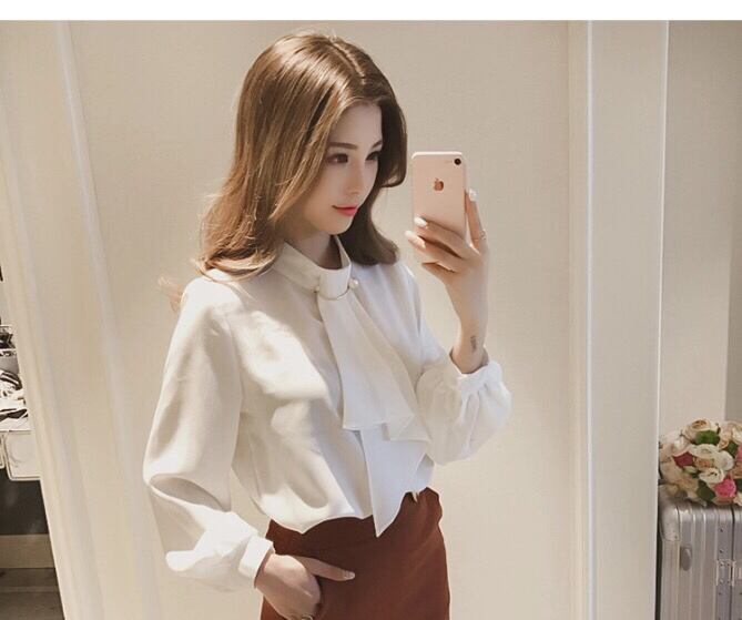 送料無料 ブラウス ボウタイ パフスリーブ レディース 白 ホワイト オフィス 長袖 フォーマル シャツ ノーカラー リボン プルオーバー スキッパー Vネック シンプル インナー スーツ 秋ファッション 秋冬 | primarc