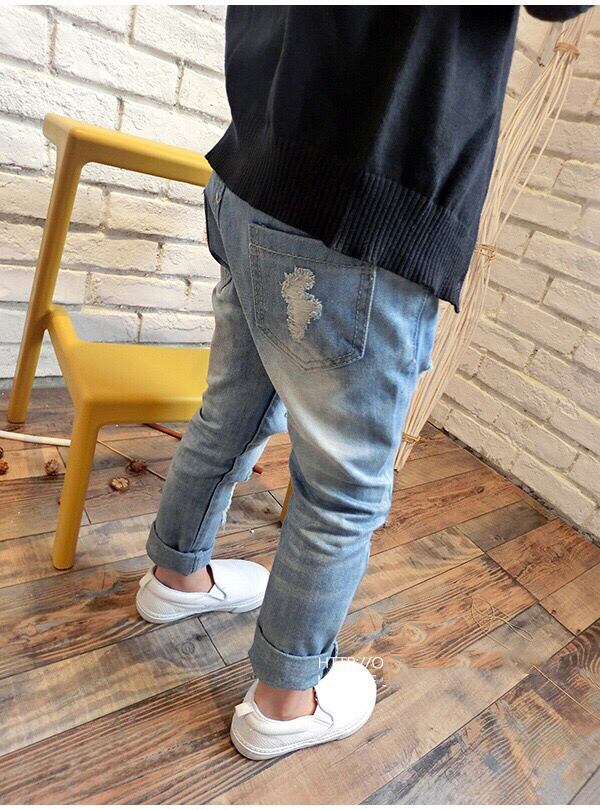 ダメージ加工、お洒落な韓国風子供デニムパンツ。 送料無料 追跡番号付き 韓国風子供服 デニムパンツ キッズ ジュニア デニム パンツ 男の子 女の子 ボーイズ ジーンズ ジーパン 長パンツ 長ズボン 春秋 ボトムスパンツ | primarc