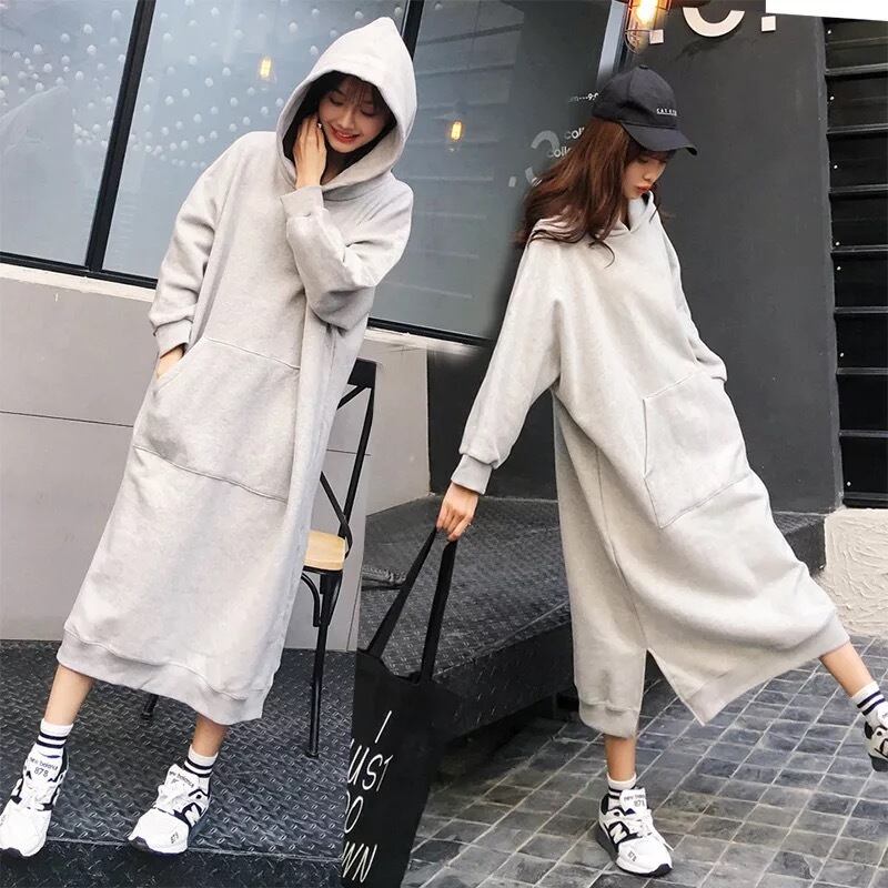 パーカーワンピース ロング 秋 冬 レディース パイル 無地 スリット 大きいサイズ 大きめ パーカー ロング丈 ドロップショルダー ゆったり カジュアル ワンピース ミディアム スウェット フード付き おしゃれ 大人 マタニティー 体型カバー