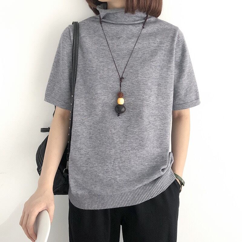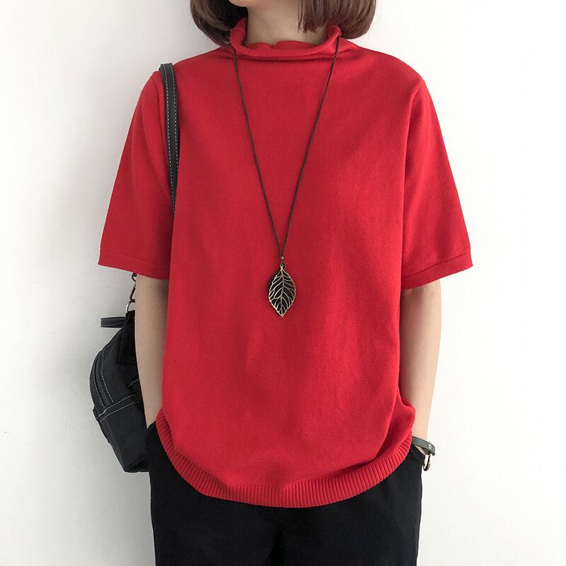 送料無料 ストレッチ プチハイネック ニット 薄手 無地送料無料 ストレッチ プチハイネック リブニット タートル ニット 半袖ニット レディース カットソー トップス シャツ 薄手 ブラウス 無地 オフィス ビジネス 通勤 | primarc