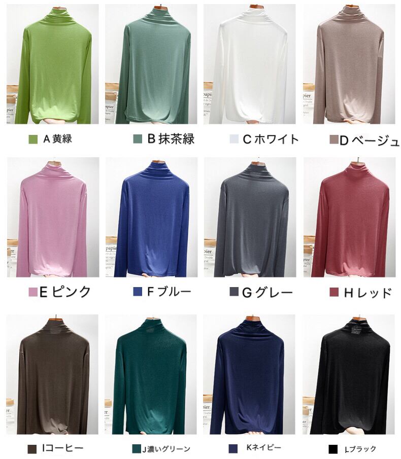 tシャツ ハイネック レディース トップス ハイネックtシャツ インナー 長袖Tシャツ 無地 インナー モダール ストレッチ 仕事着 通勤 通学 春 秋 部屋着