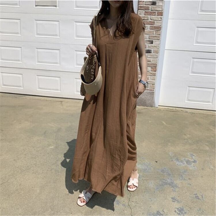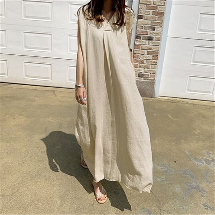 ビーチワンピース 女 スカート ワンピース 春夏 ワンピース レディース vネック 棉 リネン スカート ビーチワンピース ロングワンピース 女 春夏 パーティー カジュアル 可愛い デート 大人 ノー袖 コットン 韓版 ビューティ | primarc