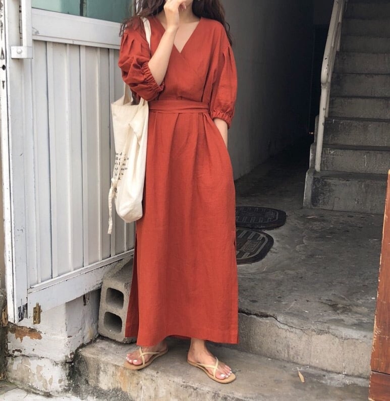 送料無料 マキシワンピース フレアワンピース ワンピース レディース きれいめ シャツワンピース 長袖 七分袖 vネック Aライン ロング ミモレ丈 ゆったり 体型カバー 通勤 チュニックワンピース 春 秋 カジュアル ナチュラル 綿 20代 30代 40代 50代 ロングワンピース おしゃれ
