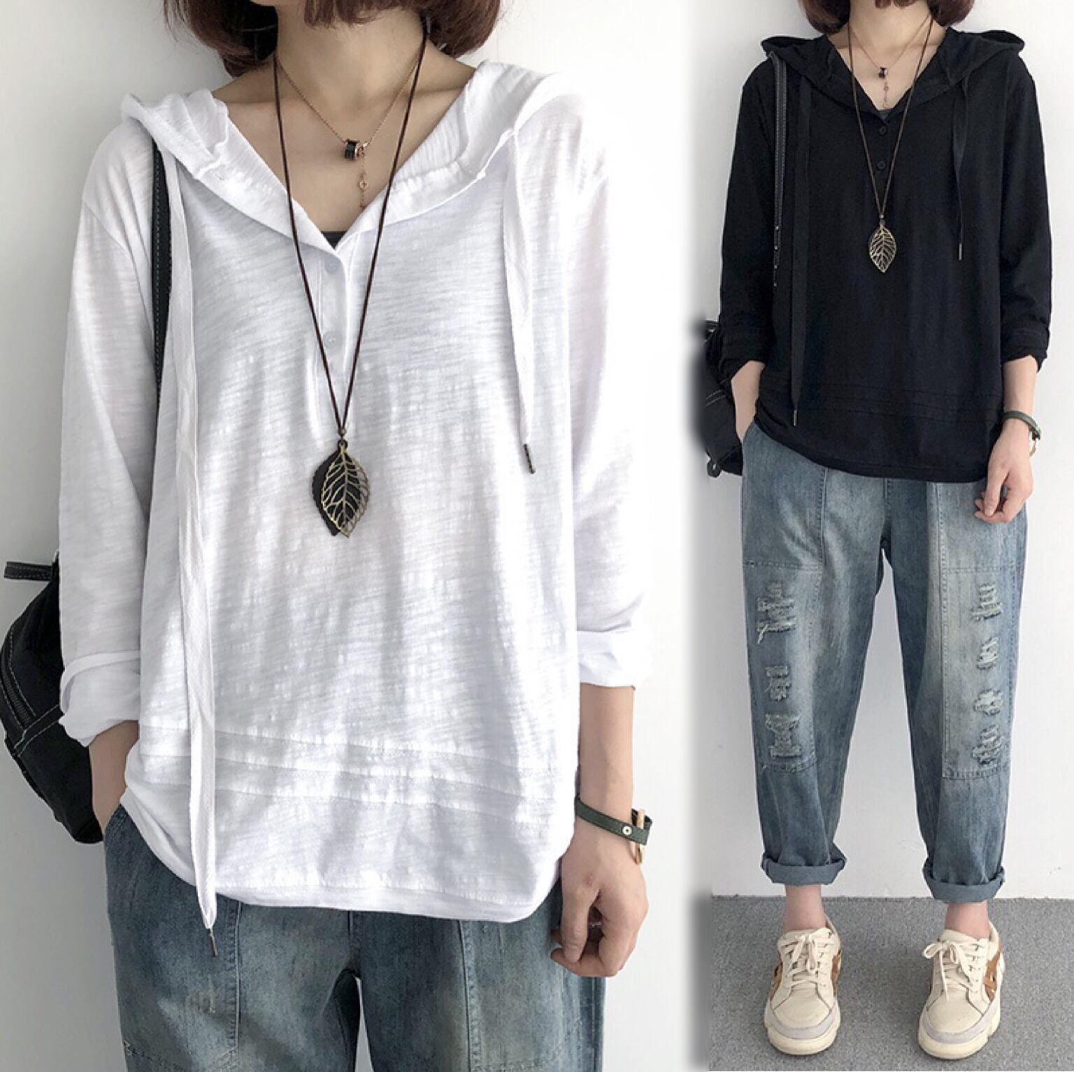 送料無料 パーカー レディース 長袖tシャツ フード付き ロンT カットソー プルオーバー ロングtシャツ ロンティー スエット ロングパーカー ゆったり 春夏秋冬 ブラック ホワイト フリー 新作 | primarc
