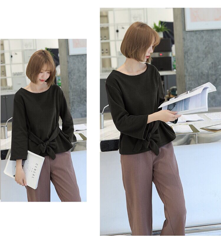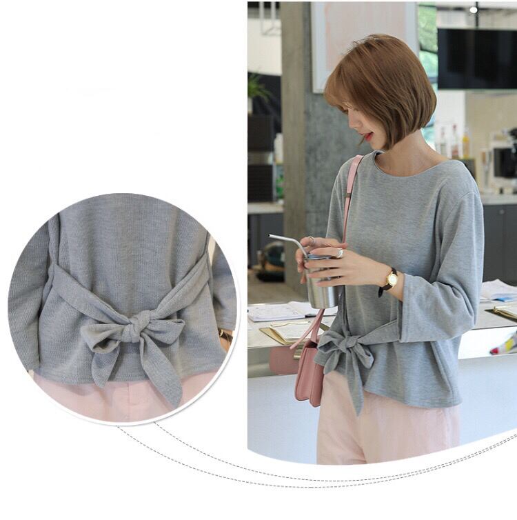 送料無料 tシャツ レディース 長袖 秋 冬 春 カットソー ゆるT トップス レディース リボン ギャザー バックギャザー 無地 Tシャツ ラウンドネック トップス ゆったり シンプルトップス ラウンドネック 大きい ふんわり | primarc
