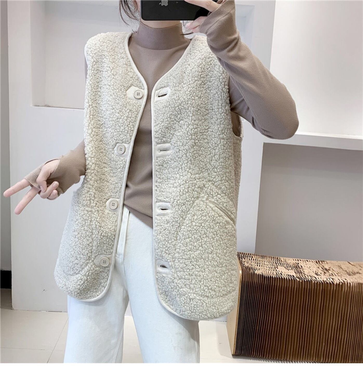 ベスト ノースリーブ ボアジャケット ロング丈 ポケット付き
