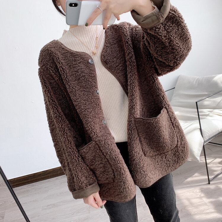 ウールボア 風 カーディガン レディース コート 防寒 暖かい 厚手 カーディガン