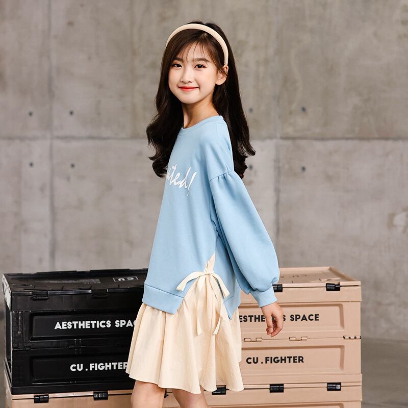 パーカーワンピース 女の子 子供服 レイヤード風 重ね着風 スウェットパーカー チュニック キッズ 長袖ワンピース 送料無料 切替 コットン 部屋着 フードなし ゆったり かわいい 通学 普段着 | primarc