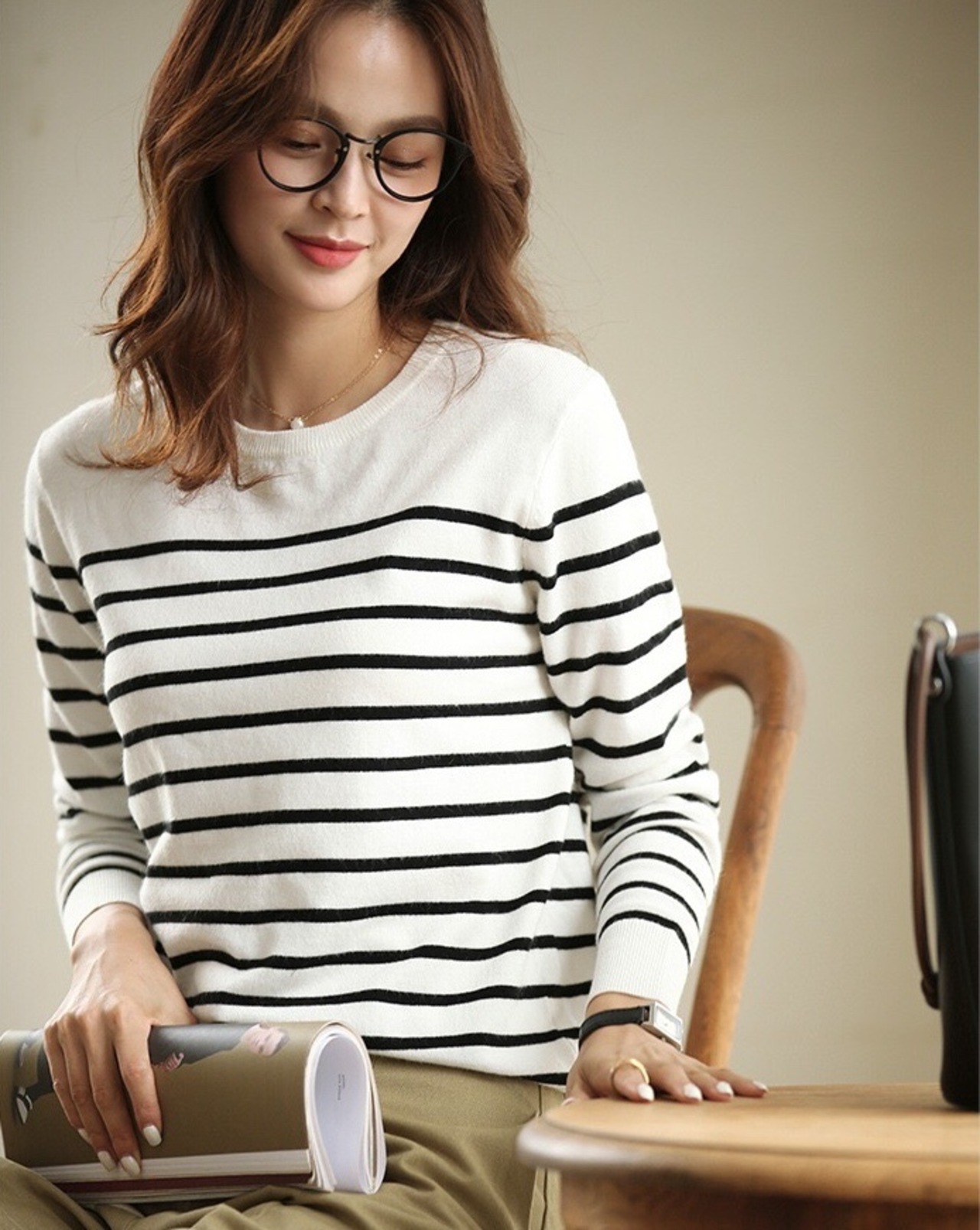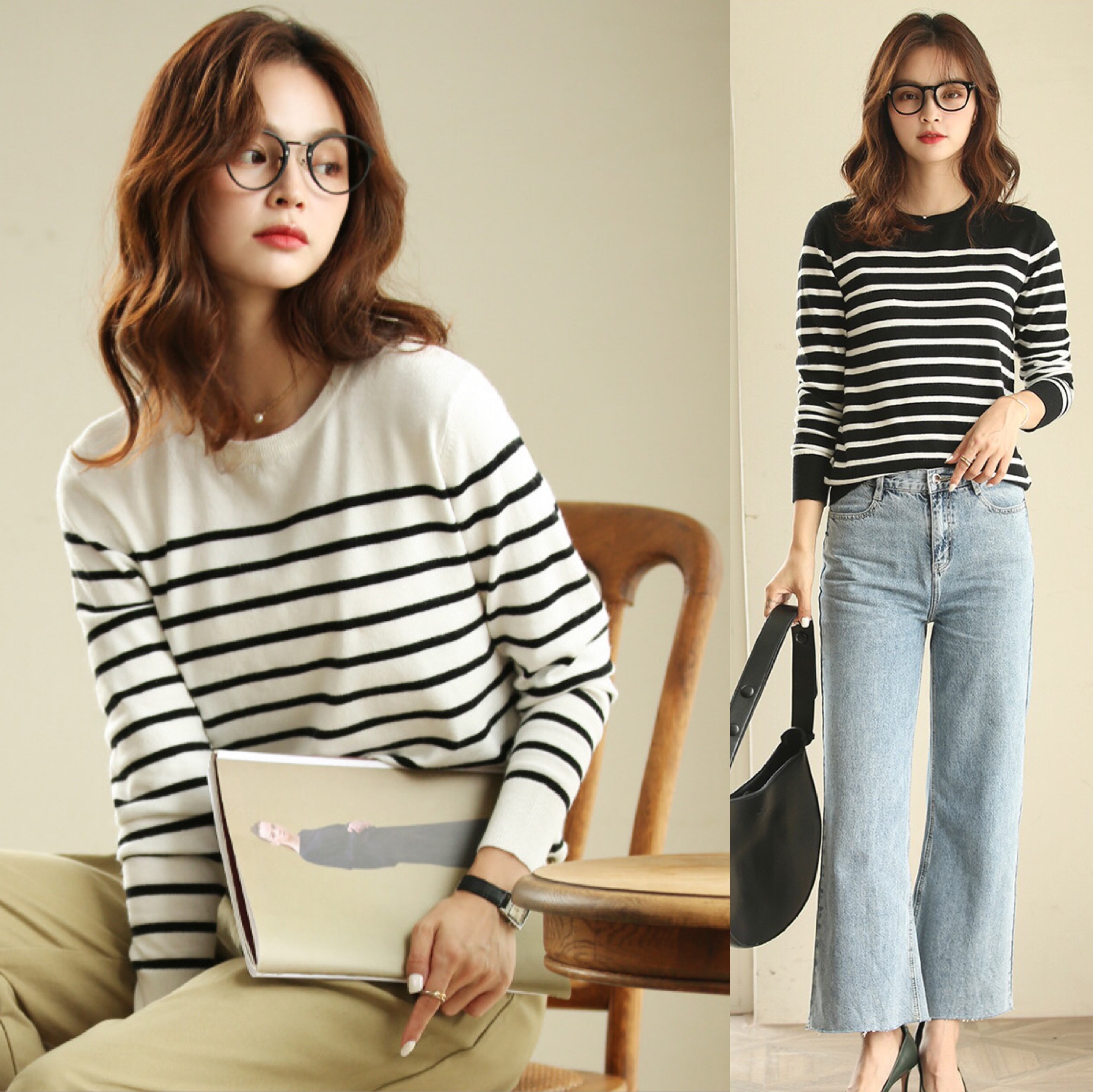 太すぎず細すぎないボーダー柄で、どんな装いにも使いやすい1枚に仕上げました。