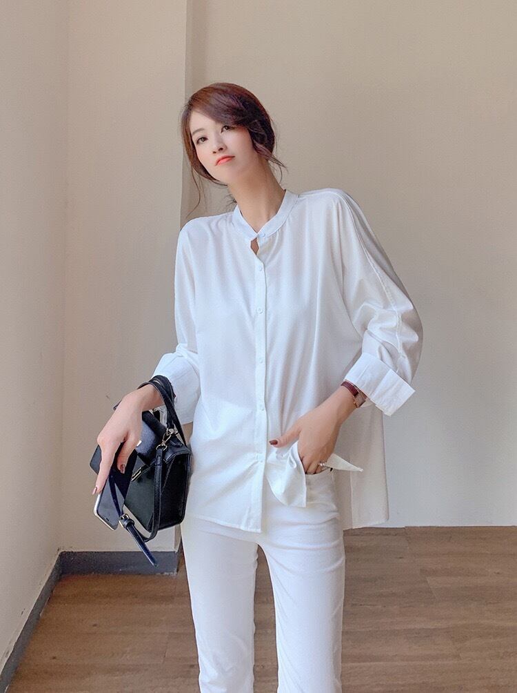 送料無料 シャツ ブラウス レディース クルーネック 白シャツ シャツワンピース 無地 ロングチュニック ロングブラウス 長袖 大きいサイズ ゆったり 春 夏 オフィス ビジネス 通勤 ホワイト ブルー カーキブラウン ブラック M L | primarc