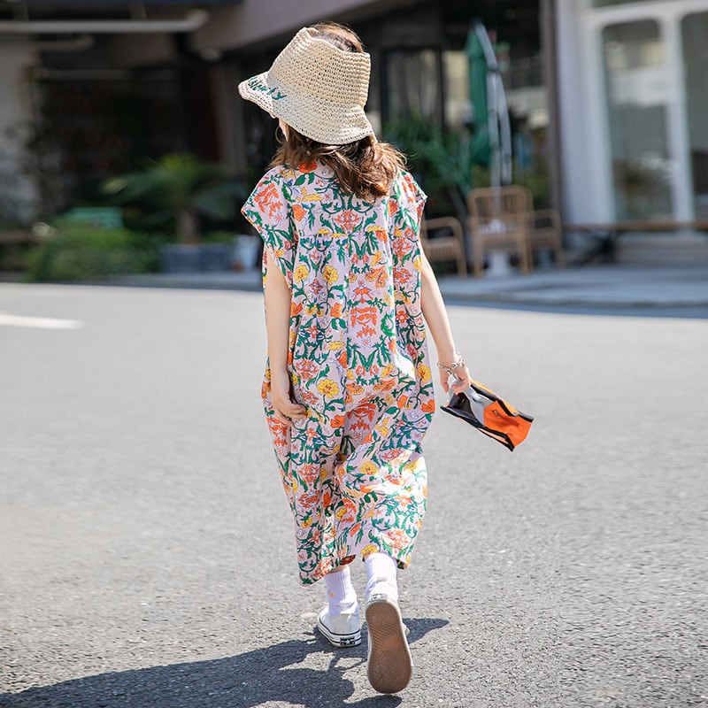 つなぎ キッズ ヒップホップ ダンス衣装 キッズダンス衣装 ツナギ 作業服 男の子 女の子ダンスファッション 韓国 派手 花柄 半袖 110 120 130 140 150 160 170 | primarc