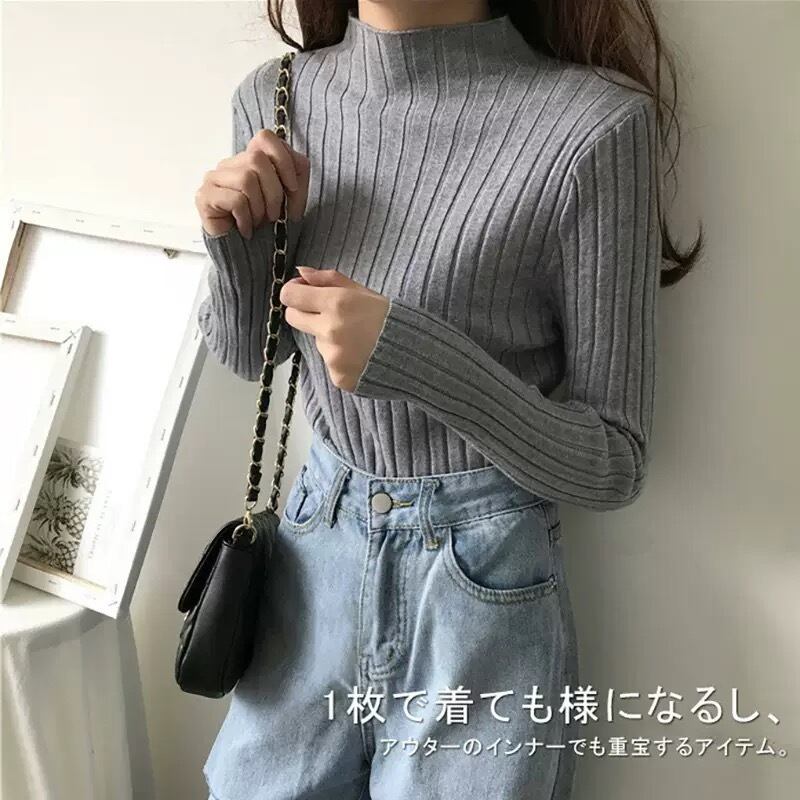 商品説明●全9色!シンプルタートルリブニット