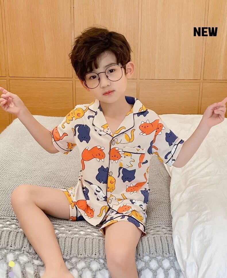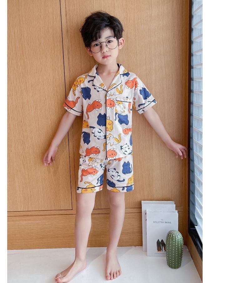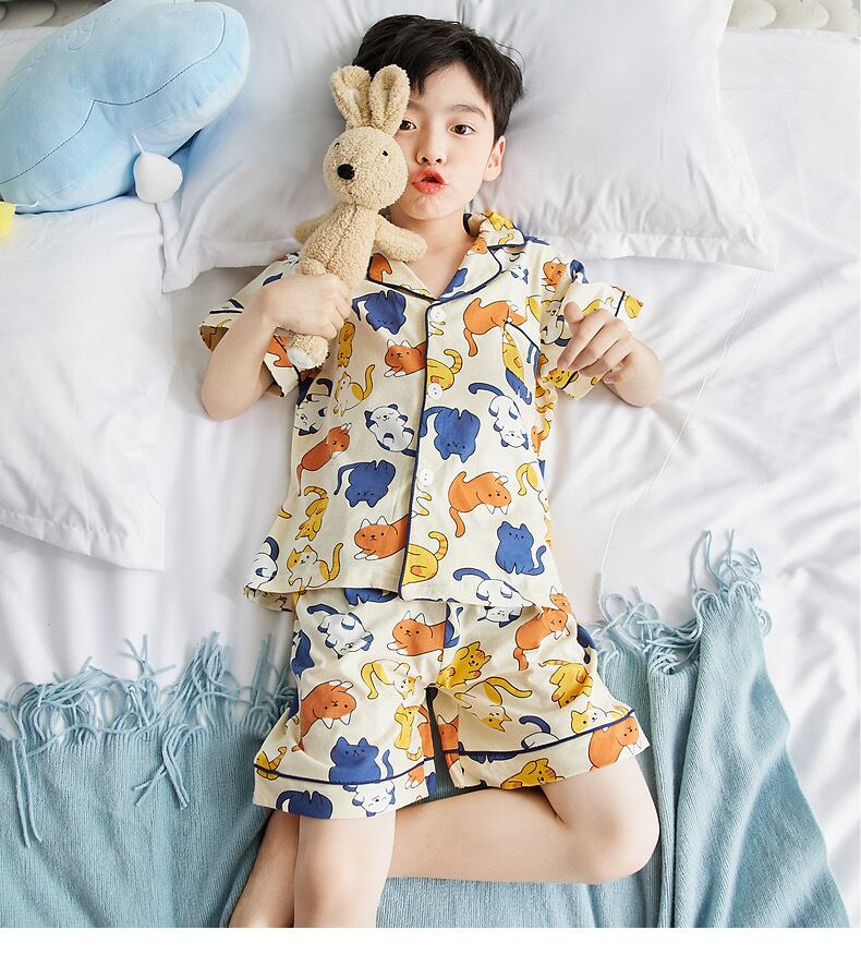 送料無料 子供パジャマ 半袖 キッズパジャマ 男女兼用 前開き ルームウェア 前ボタン こどもパジャマ シルク風パジャマ 部屋着 寝巻き 猫110 120 130 140 150 160 | primarc