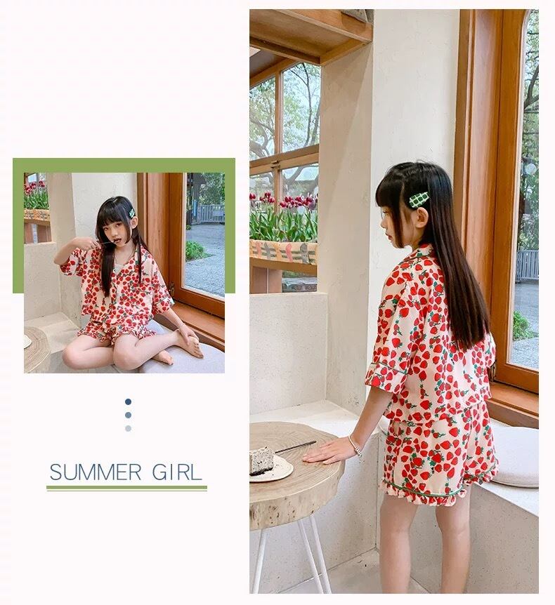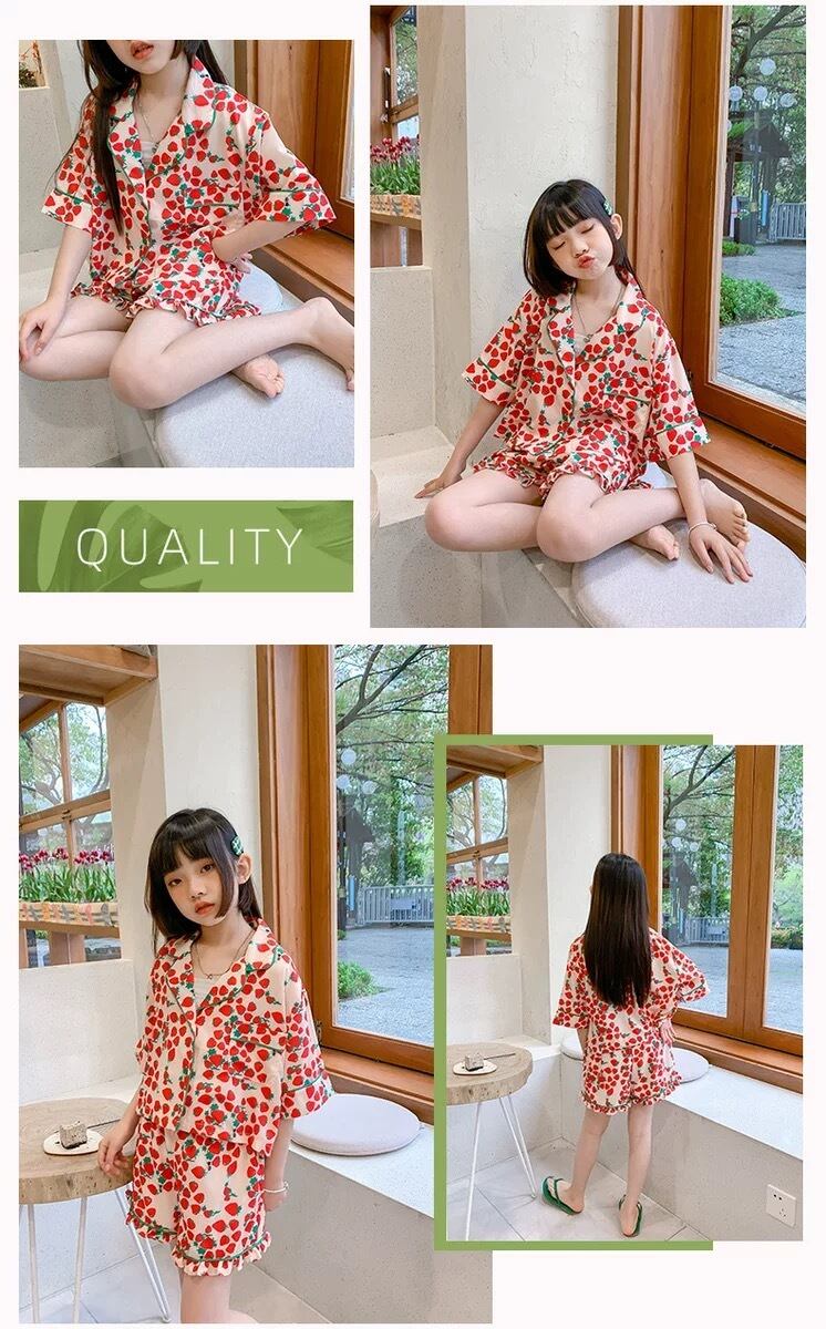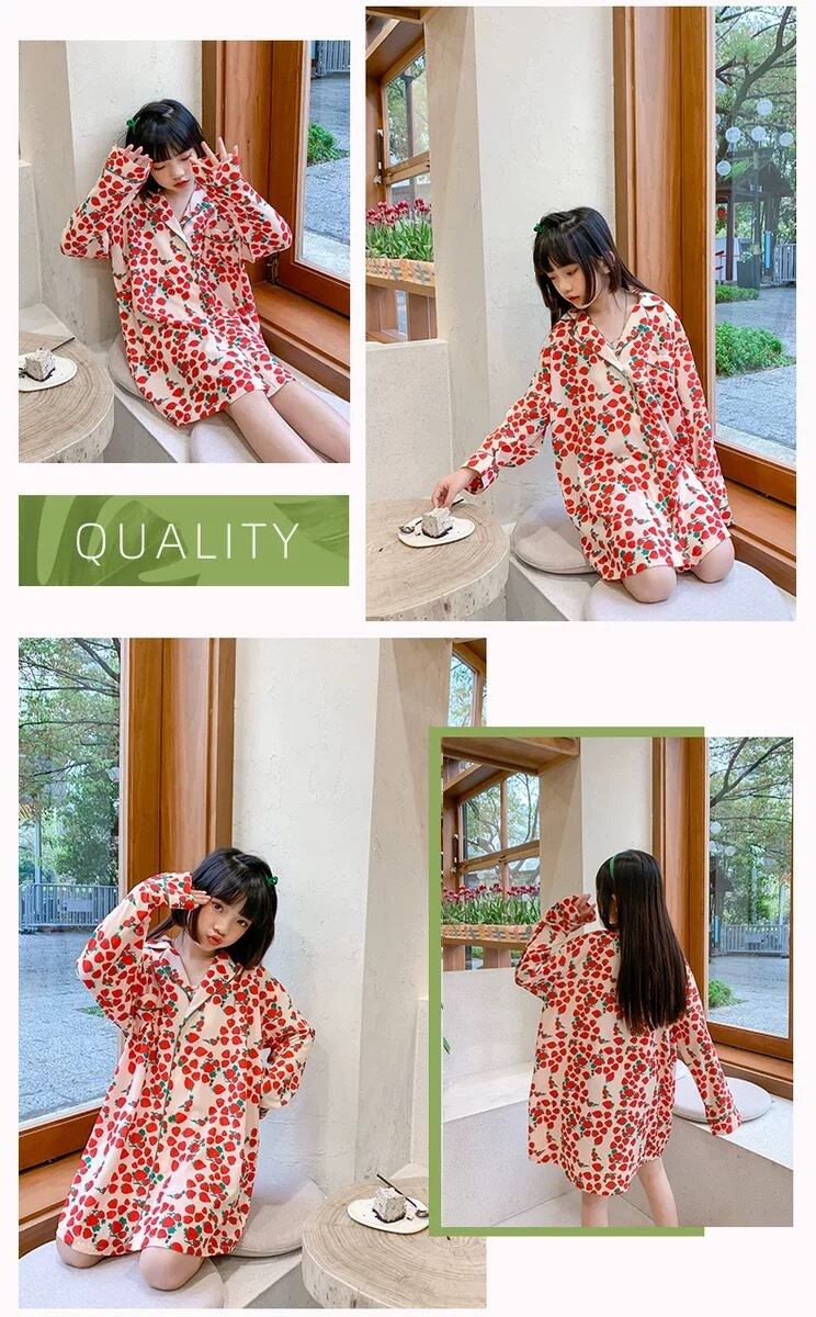 ルームウェア 前ボタン こどもパジャマ シルク風パジャマ
