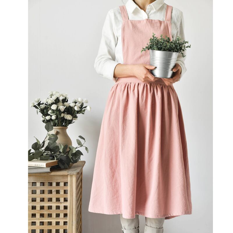 エプロン 女性用 北欧風 可愛い X型 左右ポケット付き カフェ レディース 大人 ナチュラル 可愛いエプロン ナチュラルなコットンリネン素材 かわいい おしりが隠れる ポケット付き | primarc