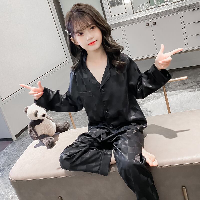 ルームウェア 前ボタン こどもパジャマ シルク風パジャマ 6色