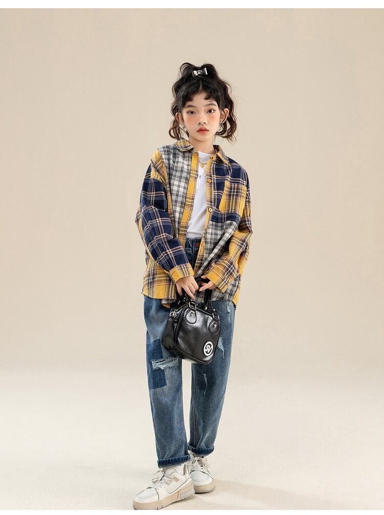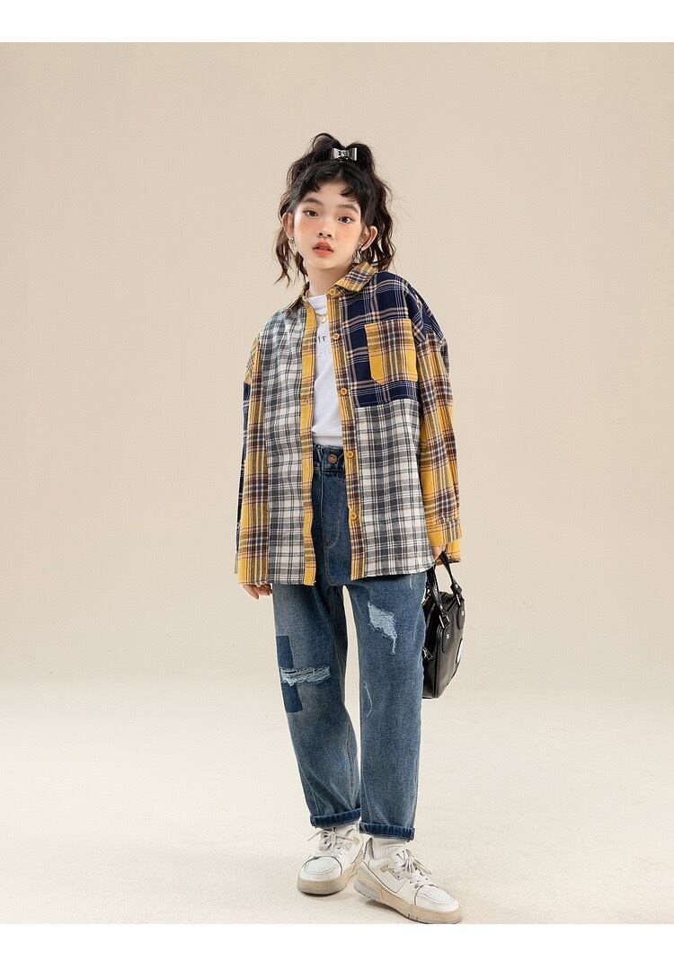 女の子 チェック柄 シャツ ダンス 舞台 団体服 演出服 韓国子供服 キッズ カジュアル シャツ 長袖 トップス ゆったり シャツ ブラック 普段着 通学着 運動着 小学生 中学生 チェック シャツ お洒落 シャツ 春秋 旅行 お出かけ 子供用 120cm 130cm 140cm 150cm 160cm 170cm | primarc