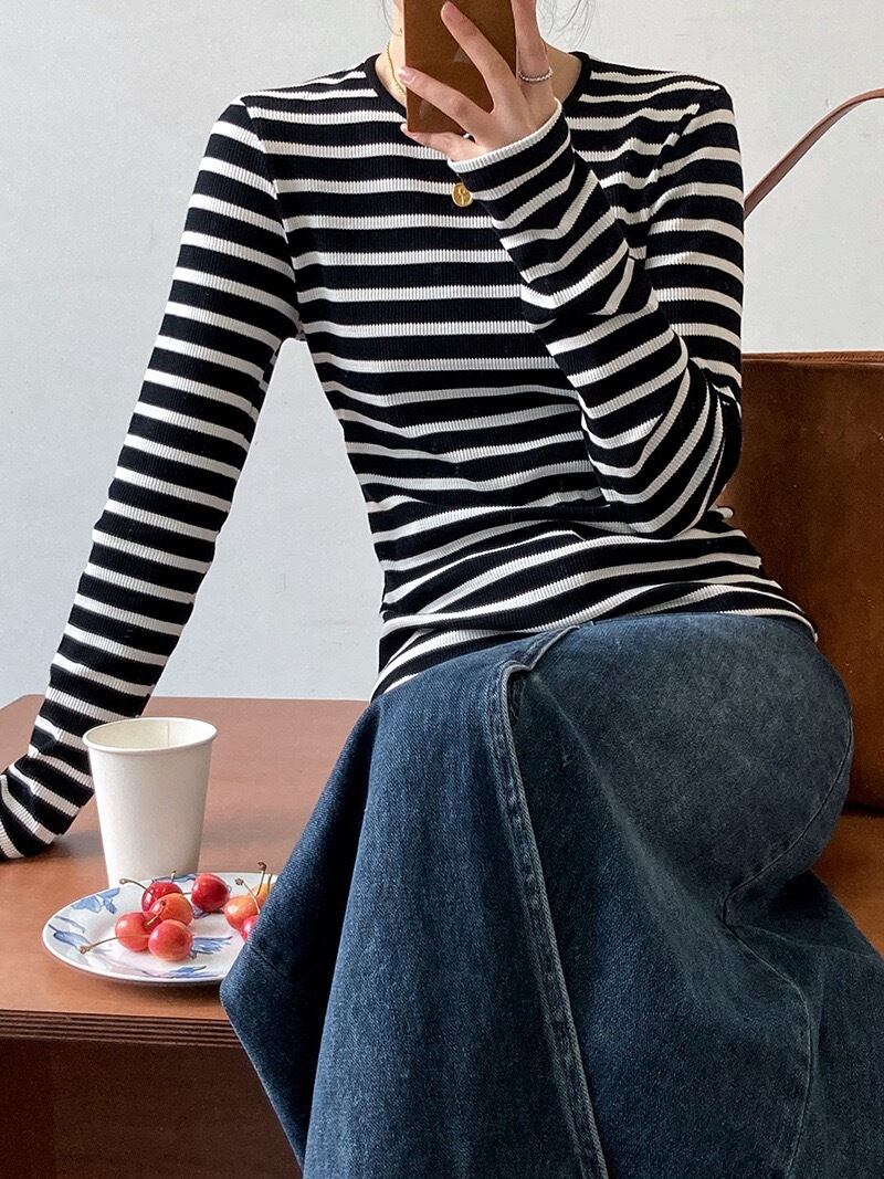 クルーネック 長袖 ロング ボーダー 春 秋 冬 レディース チクチクしない 秋冬 M / L ボーダー クルーネック ニットプルオーバー きれいめ 着痩せ シンプル ナチュナル オフィス 通勤 通学 OL ママ かわいい カジュアル 大人かわいい プルオーバー | primarc