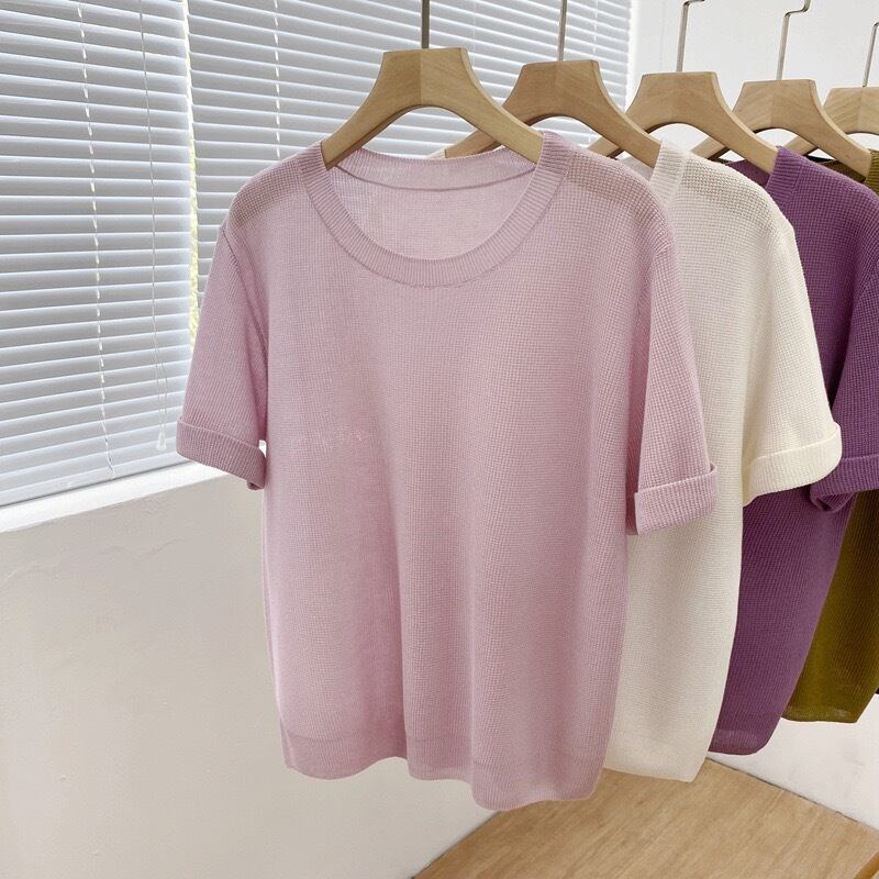 送料無料 ストレッチ ニット 薄手 無地 ストレッチ リブニット タートル ニット 半袖ニット レディース カットソー トップス シャツ 薄手 ブラウス 無地 オフィス ビジネス 通勤 フリーサイズ カラーフル | primarc