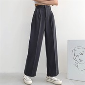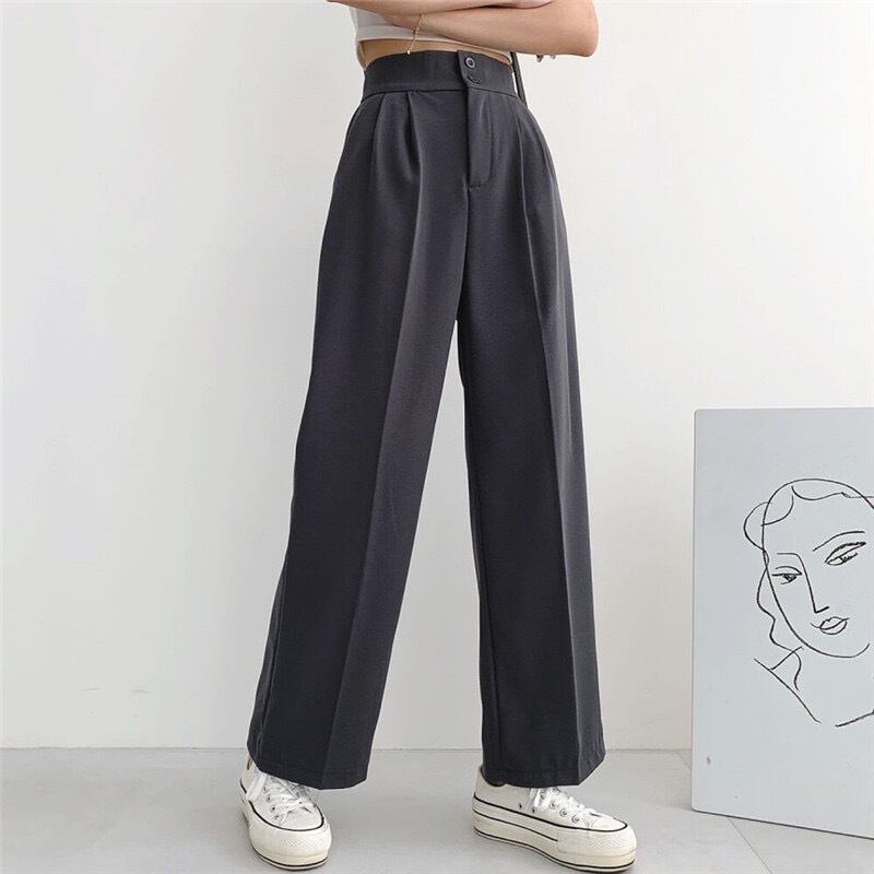 ハイウエスト 美脚 脚長 ストレートパンツ レディース ボタンストラップ ワイドパンツ 女性 ボトムス ワイド パンツ ハイウエストパンツ ズボン 長ズボン ロングパンツ スリム スタイルアップ ウエストゴム ゆったり カジュアル おしゃれ シンプル かわいい | primarc